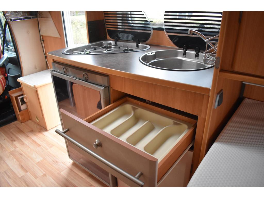 3-Pits gasfornuis, Achteruitrijcamera, Anti Blokkeer Systeem, Boiler, Cassetteluifel, Cassettetoilet, Combicassettes, Dakluiken, Douche, Fietsendrager, Gasfles, Geldige APK, Instructieboekjes aanwezig, Kapstok, Koelkast + vriesvak, Openslaande ramen, Oprijwig, Ringverwarming, Rookvrij, Satelliet antenne, Schoonwatertank, Serviceluik, TV, Vuilwatertank, airco, alarm klasse 1(startblokkering), autotelefoon voorbereiding, bestuurdersairbag, centrale deurvergrendeling met afstandsbediening, cruise control en lederen stuurwiel, dimlichten automatisch, elektrische ramen voor, kledingkast