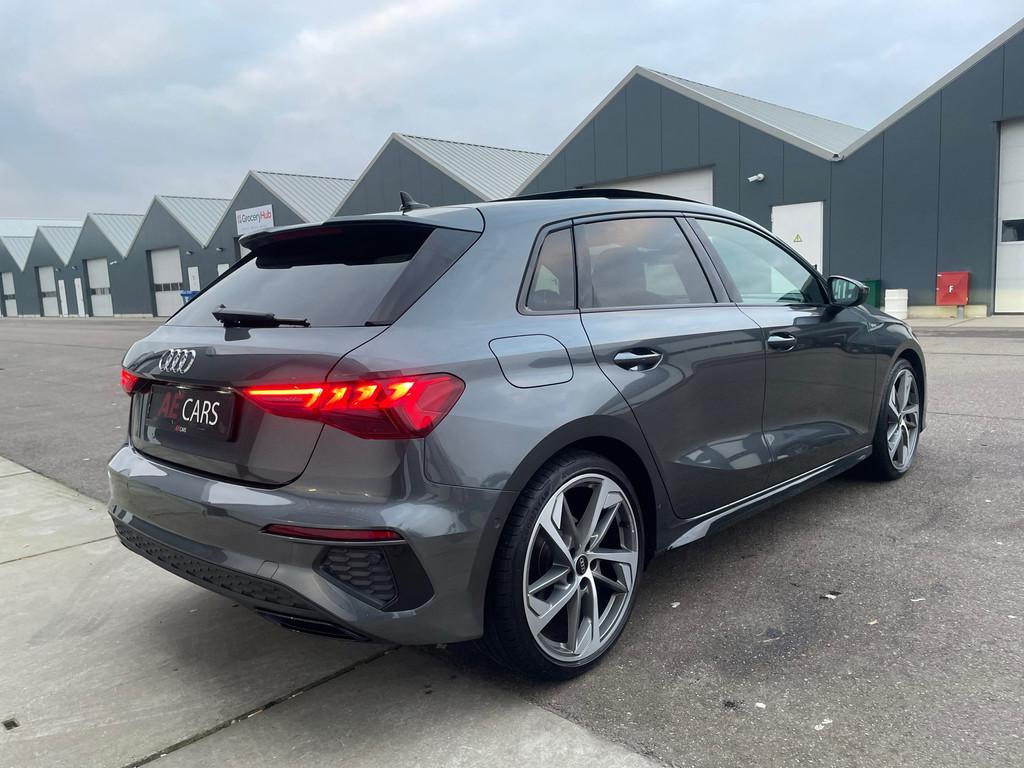 Accident Avoidance System, Achterbank in delen neerklapbaar, Achteruitrijcamera, Airbag(s) hoofd achter, Airbag(s) hoofd voor, Airbag(s) side voor, Airbag bestuurder, Airbag passagier, Aluminium delen exterieur, Aluminium interieur afwerking, Anti Blokkeer Systeem (ABS), Armsteun achter, Armsteun voor, Audio installatie, Audio installatie premium, Bandenspanningscontrolesysteem, Bestuurdersstoel in hoogte verstelbaar, Binnenspiegel automatisch dimmend, Bots herkenning en activatie, Brake Assist System, Buitenspiegel(s) automatisch dimmend, Buitenspiegels elektrisch inklapbaar, Buitenspiegels elektrisch verstelbaar, Buitenspiegels verwarmbaar, Carbonafwerking interieur, Centrale deurvergrendeling met afstandsbediening, Connected services, Cruise control, Cruise control adaptief met Stop&Go, DAB-ontvanger, Dakspoiler, Dimlichten automatisch, Dodehoek detector, Draadloze telefoonlader, Electronic Brake Distribution (EBD), Electronic Stability Program (ESP), Electronic climate controle, Elektrisch bedienbare achterklep met sensorsturing, Elektrisch glazen panorama-dak, Elektrisch verstelbare bestuurdersstoel, Elektrisch verstelbare stoel(en) met geheugen, Elektrisch verstelbare voorstoel(en), Extra getint glas, Grootlicht-assistent, Hill hold-functie, Keyless entry, Keyless start, Koplampen adaptief, Koplampreiniging, LED-lichtpakket, LED achterlichten, LED dagrijverlichting, Lederen/alcantara bekleding, Lederen bekleding, Lederen stuurwiel, Lendesteunen (verstelbaar), Lichtmetalen velgen 5-spaaks 17", Lichtmetalen velgen 18", Lichtmetalen velgen multi-spaaks 18", Luxe lederen bekleding, Matrix LED koplampen, Metallic lak, Multimedia-voorbereiding, Navigatie full map, Oplaadmogelijkheid, Parkeer-assistent, Parkeer pakket, Parkeersensor achter, Parkeersensor voor, Passagiersstoel in hoogte verstelbaar, Premium kleur, Radio, Regensensor, Rijstrooksensor, Ruitensproeiers verwarmbaar, S Line exterieur, Speciale kleur, Sportstoelen, Sportstuur, Start/stop systeem, Startblokkering, Stof/kunstlederen bekleding, Stuurbekrachtiging, Stuurhulp, Stuurwiel multifunctioneel, Telefoonintegratie premium, Tractie Controle Systeem (TCS), Uitwijk assistent, Verkeersbord detectie, Volledig digitaal instrumentenpaneel, Warmtewerende voorruit, WiFi voorbereiding