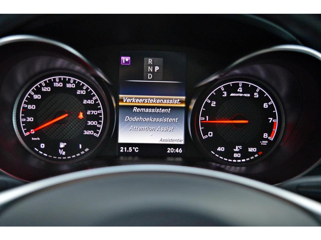 "Lichtmetalen velgen 21""", AMG-spoilerrand, AMG-styling, AMG-vloermatten, AMG Performance-stoelen, AMG Performance-stuurwiel in nappaleder, AMG Performance-uitlaat inschakelbaar, AMG interieur, AMG remsysteem, Accident Avoidance System, Achterbank in delen neerklapbaar, Achteropkomend verkeer waarschuwing, Achteruitrijcamera, Actief koolfilter (geurfilter), Actieve remassistent, Adaptief Demping Systeem (ADS), Airbag(s) knie, Airbag bestuurder, Airbag passagier, Akoestische waarschuwing veiligheidsgordel, Alarm klasse 3, Aluminium interieur afwerking, Ambianceverlichting, Anti Blokkeer Systeem (ABS), Armsteun achter, Armsteun voor, Attention Assist, Audio installatie, Automatische inschakeling voor rijverlichting, Bandenspanningscontrolesysteem, Binnen- en linkerbuitenspiegel automatisch dimmend, Binnenspiegel automatisch dimmend, Bots herkenning en activatie, Brake Assist System, Buitenspiegel(s) automatisch dimmend, Buitenspiegels elektrisch inklapbaar, Buitenspiegels elektrisch verstelbaar, Buitenspiegels met verlichting, Buitenspiegels verwarmbaar, Centrale deurvergrendeling met afstandsbediening, Combi-instrument met aanduiding voor niet-gedragen gordels op de achterzitplaatsen, Connected services, Cruise control, Dagrijverlichting, Dakrails, Dimlichten automatisch, Distronic Plus, Dodehoekassistent, Edition 1 pakket, Electronic Stability Program (ESP), Electronic climate controle, Elektrisch bedienbare achterklep, Elektrisch bedienbare ramen voor en achter, Elektrische handrem, Elektrische ramen voor, Elektrisch glazen panorama-dak, Elektrisch verstelbare rugleuning, Elektrisch verstelbare stoel(en) met geheugen, Elektrisch verstelbare stoelen, Elektrisch verstelbare voorstoel(en), Elektronische remkrachtverdeling, Emergency Call, Extra getint glas, Grootlicht-assistent, Handleiding Duits, Hill hold-functie, Interieurhemel stof zwart, KeylessGo, Keyless start, Klimaatbediening, Kruisend verkeer detectie, LED achterlichten, LED dagrijverlichting, LED koplampen, Lederen interieurdelen, Lederen stuurwiel, Lendensteun viervoudig verstelbaar, Lendesteunen (verstelbaar), Lichtassistent, Luchtvering, Luxe lederen bekleding, MP3 audio, Mercedes connect me - Remote Online, Metallic lak, Middenarmsteun voor, Multifunctioneel stuurwiel, Multimedia-voorbereiding, Navigatie-systeem full map + hard disk, Op dit moment word er met de auto gereden en loopt de kilometerstand langzaam op., Parkeer-assistent, Parkeersensor achter, Parkeersensor voor, Proactive bescherming inzittenden, Regensensor, Rijstrooksensor met correctie, Schakelmogelijkheid aan stuurwiel, Sperdifferentieel, Sportonderstel, Sportstoelen, Sportstuur, Sportuitlaatsysteem, Spraakbediening, Start/stop, Start/stop systeem, Startblokkering, Stof/kunstlederen bekleding, Stuurwiel multifunctioneel, Tractie Controle Systeem (TCS), Trekhaak, Trekhaak elektrisch uitklapbaar, Variabele stuuroverbrenging, Vermoeidheids herkenning, Verwarmde voorstoelen, Warmtewerend glas, WiFi voorbereiding