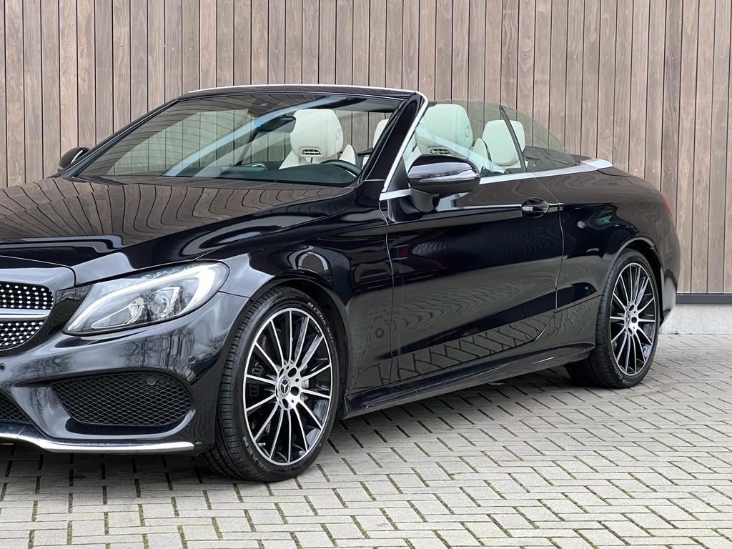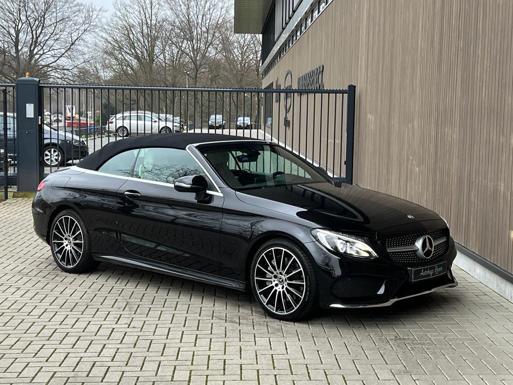 "Lichtmetalen velgen 18""", AMG-styling, AMG Line Exterieur, AMG Line Interieur, Accident Avoidance System, Achterbank in delen neerklapbaar, Achteruitrijcamera, Airbag(s) hoofd achter, Airbag(s) hoofd voor, Airbag(s) knie, Airbag(s) side voor, Airbag bestuurder, Airbag passagier, Alarm klasse 3, Aluminium interieur afwerking, Anti Blokkeer Systeem, Anti Blokkeer Systeem (ABS), Anti Slip Control, Armsteun voor, Audioinstallatie met CD-speler, Autotelefoonvoorbereiding met Bluetooth, Bandenspanningscontrolesysteem, Binnenspiegel automatisch dimmend, Bots herkenning en activatie, Brake Assist System, Buitenspiegel(s) automatisch dimmend, Buitenspiegels elektrisch inklapbaar, Buitenspiegels elektrisch verstelbaar, Buitenspiegels verwarmbaar, Cabrio-pakket, Centrale deurvergrendeling met afstandsbediening, Chroom delen exterieur, Connected services, Cruise control, Dimlichten automatisch, Dodehoek detector, Electronic Brake Distribution, Electronic Stability Program, Electronic Stability Program (ESP), Electronic climate controle, Elektrisch bedienbare kap, Elektrische ramen achter, Elektrische ramen voor, Hill hold-functie, Kruisend verkeer detectie, LED achterlichten, LED dagrijverlichting, LED koplampen, Lederen bekleding, Lederen stuurwiel, Metallic lak, Multimedia-voorbereiding, Navigatie-systeem full map, Nekverwarming, Parkeer-assistent, Parkeersensor voor en achter, Regensensor, Rijassistentiepakket, Rijstrooksensor met correctie, Schakelmogelijkheid aan stuurwiel, Sportstuur, Start/stop systeem, Stuur verstelbaar, Stuurwiel multifunctioneel, Tractie Controle Systeem (TCS), Vermoeidheids herkenning, Voorstoelen verwarmd, Warmtewerend glas, Windscherm