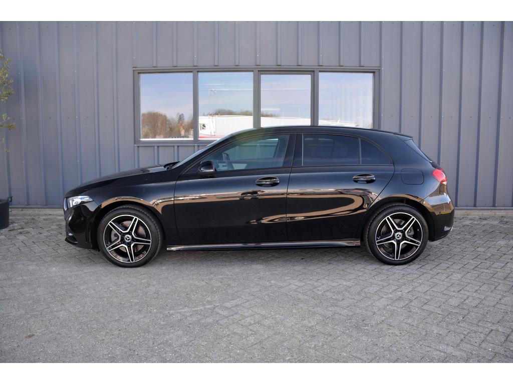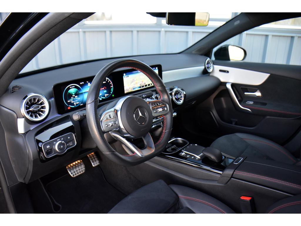 "Lichtmetalen velgen 6-spaaks 18""", AMG-styling, Accident Avoidance System, Achterbank in delen neerklapbaar, Achteruitrijcamera, Airbag(s) hoofd achter, Airbag(s) hoofd voor, Airbag(s) knie, Airbag(s) side voor, Airbag bestuurder, Airbag passagier, Aluminium interieur afwerking, Anti Blokkeer Systeem (ABS), Armsteun achter, Armsteun voor, Autotelefoonvoorbereiding met Bluetooth, Bandenspanningscontrolesysteem, Bestuurdersstoel in hoogte verstelbaar, Binnenspiegel automatisch dimmend, Bots waarschuwing systeem, Buitenspiegel(s) automatisch dimmend, Buitenspiegels elektrisch inklapbaar, Buitenspiegels elektrisch verstelbaar, Buitenspiegels met verlichting, Buitenspiegels verwarmbaar, Chroom delen exterieur, Connected services, Cruise control adaptief met Stop&Go, DAB-ontvanger, Draadloze telefoonlader, Electronic Stability Program (ESP), Electronic climate controle, Elektrische ramen achter, Elektrische ramen voor, Extra getint glas, Keyless start, Kleur zwart, LED achterlichten, LED dagrijverlichting, LED koplampen, Lendesteunen (verstelbaar), Metallic lak, Multimedia-voorbereiding, Navigatie-systeem full map + hard disk, Oplaadmogelijkheid, Parkeer-assistent, Parkeersensor achter, Parkeersensor voor, Passagiersstoel in hoogte verstelbaar, Radio, Regensensor, Rijstrooksensor met correctie, Schakelmogelijkheid aan stuurwiel, Sportstoelen, Sportstuur, Spraakbediening, Startblokkering, Stof/kunstlederen bekleding, Stuurbekrachtiging snelheidsafhankelijk, Stuurhulp, Stuurwiel multifunctioneel, Tractie Controle Systeem (TCS), Verlaagde carrosserie, Vermoeidheids herkenning, Verwarmde voorstoelen, Volledig digitaal instrumentenpaneel, WiFi voorbereiding