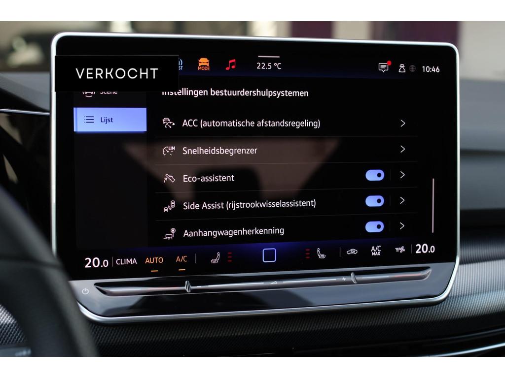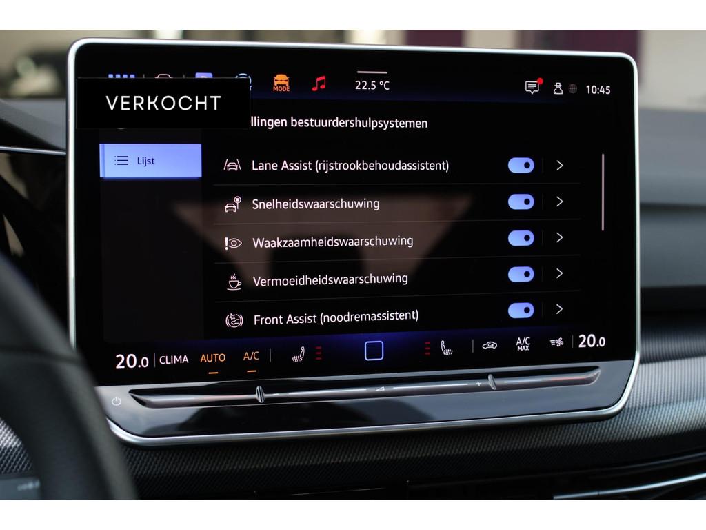 "Lichtmetalen velgen multi-spaaks 18""", 3D led achter met dynamische richtingaanwijzer, Accident Avoidance System, Achterbank in delen neerklapbaar, Achterbank met armsteun, Achteruitrijcamera, Adaptive cruise control, Airbag(s) hoofd, Airbag(s) hoofd voor, Airbag(s) side voor, Airbag bestuurder, Airbag passagier, Airco, Airco automatisch, Airco separaat achter, Alarmsysteem, Ambiente lichtpakket, Android Auto, Anti Blokkeer Systeem (ABS), App Connect, Apple Carplay, Armsteun, Armsteun voor, Audio-navigatiesysteem, Audio installatie premium, Automatische snelheidsbegrenzing, Autotelefoonvoorbereiding met Bluetooth, Bandenspanningscontrolesysteem, Binnenspiegel automatisch dimmend, Black Style Pakket, Black pakket, Bots herkenning en activatie, Buitenspiegels elektrisch inklapbaar, Buitenspiegels elektrisch verstelbaar, Buitenspiegels verwarmbaar, Bumpers in carrosseriekleur, Connected services, Cruise control adaptief met Stop&Go, DAB, DAB-ontvanger, Dimlichten automatisch, Dodehoek detector, Dodehoek herkenning, Draadloos oplaad vak, Draadloze telefoonlader, Drive mode, Electronic Stability Program (ESP), Elektrische ramen achter, Elektrische ramen voor, Elektrisch glazen panorama-dak, Elektronisch sperdifferentieel (EDS), Extra getint glas, Getinte ramen, Grootlicht-assistent, Harman/Kardon sound system, Head-Up Display, Head-up display, Hill hold-functie, Keyless entry, Keyless entry/go, Keyless start, Kruisend verkeer detectie, LED-lichtpakket, LED achterlichten, Lane Assist, Lederen stuurwiel, Lendesteunen (verstelbaar), Lichtmetalen velgen 18'', Matrix LED koplampen, Matrix led voor met dynamische richtingaanwijzer, Metallic lak, Middenarmsteun, Multimedia-voorbereiding, Multimedia pakket plus, Navigatie, Panoramadak, Parkeersensor achter, Parkeersensoren achter, Parkeersensor voor, R-Line Exterieur, Regensensor, Rijstrooksensor met correctie, Schakelmogelijkheid aan stuurwiel, Skiluik, Sportonderstel, Sportstoelen, Spraakbediening, Start/stop systeem, Startblokkering, Stuurhulp, Stuurwiel multifunctioneel, Stuurwiel verwarmd, Subwoofer, Telefoonintegratie premium, Telefoonvoorbereiding, Tractie Controle Systeem (TCS), Trekhaak, Trekhaak elektrisch uitklapbaar, Uitparkeer assistent, Variabele stuuroverbrenging, Velours bekleding, Verkeersbord detectie, Vermoeidheids herkenning, Verwarmde voorstoelen, Virtual cockpit, Volledig digitaal display, Volledig digitaal instrumentenpaneel, Voorstoelen in hoogte verstelbaar, Zwarte hemelbekleding, verwarmbare achterruit