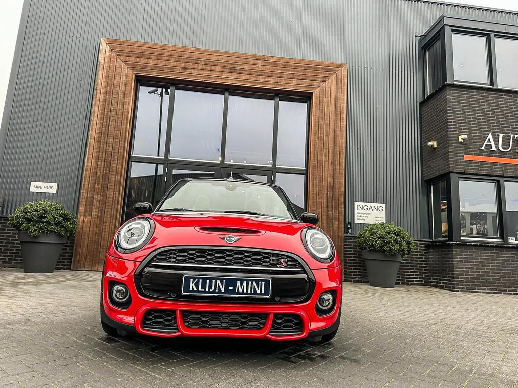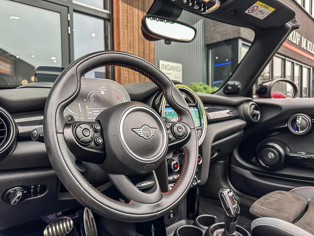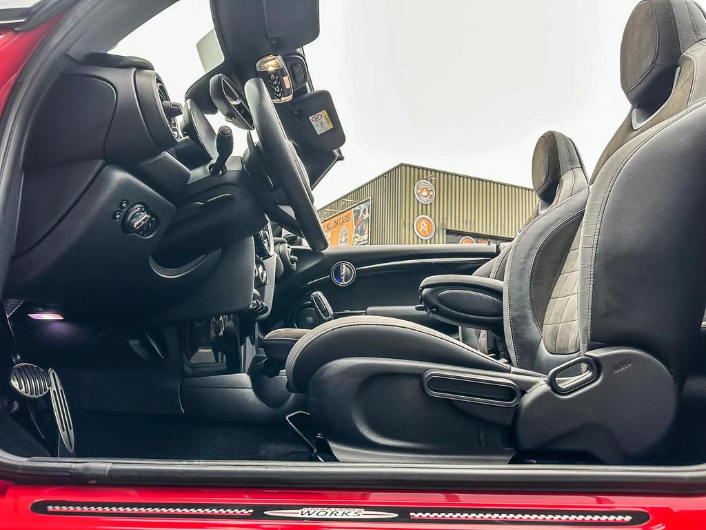 "Lichtmetalen velgen 17""", 17" Jcw velgen, Achterbank in delen neerklapbaar, Achteropkomend verkeer waarschuwing, Achteruitrijcamera, Adaptive cruise control, Aerosportpakket, Airbag(s) hoofd voor, Airbag(s) side voor, Airbag bestuurder, Airbag passagier, Airco automatisch, Alarm klasse 3, Anti Blokkeer Systeem (ABS), Armsteun voor, Audio installatie premium, Autotelefoonvoorbereiding met Bluetooth, Bandenspanningscontrolesysteem, Bestuurdersstoel in hoogte verstelbaar, Buitenspiegels elektrisch inklapbaar, Buitenspiegels elektrisch verstelbaar, Buitenspiegels verwarmbaar, Centrale deurvergrendeling met afstandsbediening, Climate control, Connected services, Cruise control, Cruise control adaptief met Stop&Go, Dimlichten automatisch, Draadloze telefoonlader, Dtc, Electronic Brake Distribution (EBD), Electronic Stability Program (ESP), Elektrisch bedienbare kap, Elektrische ramen voor, Harman Kardon soundsystem, Head-up display, Hill hold-functie, Jcw interieur, Jcw sportpakket, Keyless entry, Koplampen adaptief, LED achterlichten, LED koplampen, LED mistlampen, Lederen bekleding, Lederen sportstuur, Metallic lak, Multimedia-voorbereiding, Navigatie full map, Parkeer-assistent, Parkeersensor achter, Parkeersensor voor, Regensensor, Sportuitlaat, Spraakbediening, Start/stop systeem, Stuurhulp, Stuurwiel multifunctioneel, Telefoonintegratie premium, Union Jack achterlichten, Verwarmde voorstoelen, Virtual cockpit, Volledig digitaal instrumentenpaneel, Windscherm, Xenon, actieve voetgangersbeveiliging, active cruise control, apple carplay, black pack, dealer onderhouden, donker dakhemel, garantie, ledverlichting, lichtpakket, nationale autopas, nieuwstaat, soundsystem, sport button, wired pakket
