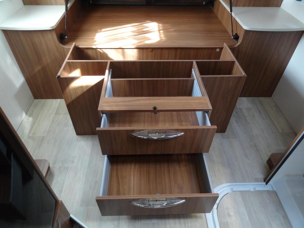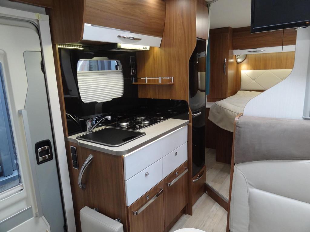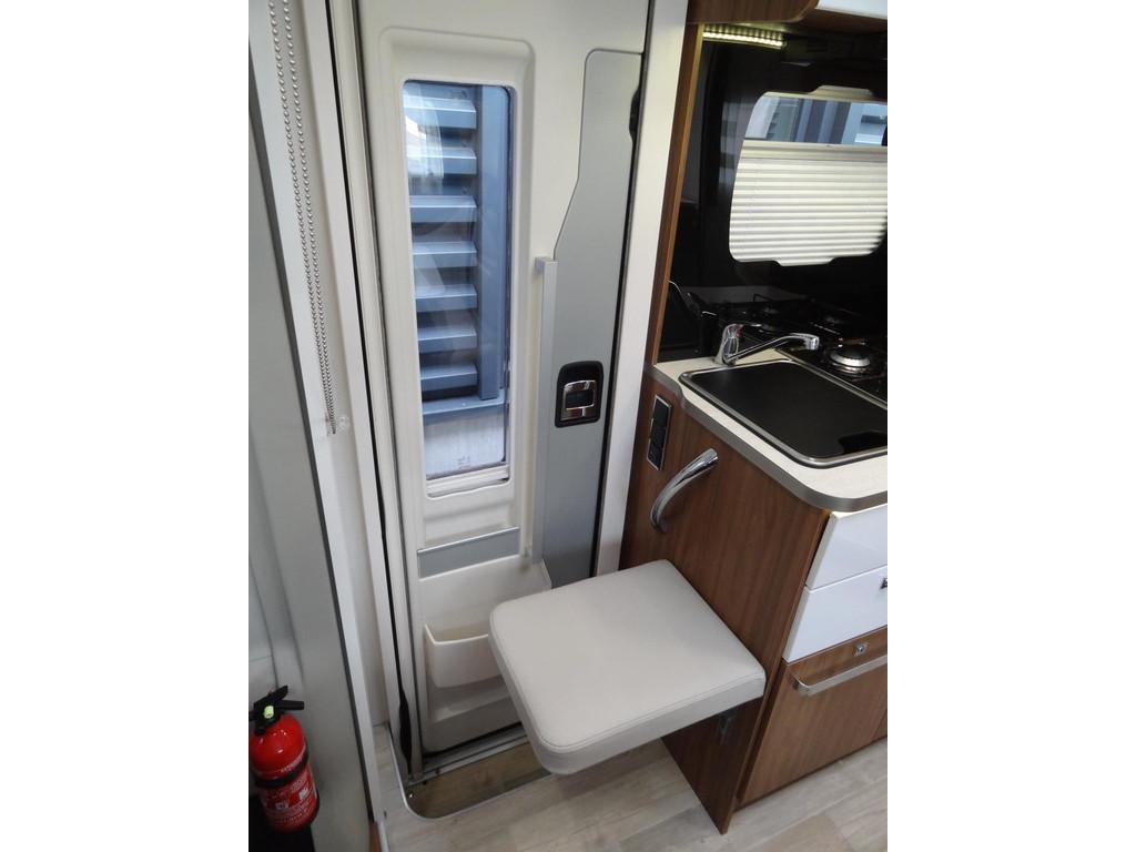2 persoons Queensbed, 3 pits gasstel, Accessoires accu groot, Achteruitrijcamera, Airbag, Airbag bestuurder, Airco, Alle kunstofdelen in kleur gespoten, Anti Blokkeer Systeem (ABS), Armsteun voor, Audioinstallatie met CD-speler, Autotelefoonvoorbereiding, Binnenverlichting laadruimte, Boordcomputer, Buitenspiegels elektrisch verstelbaar, Buitenspiegels met stoeprandfunctie, Centrale deurvergrendeling, Cruise control, Dakluik 2X, Dakraam “skyroof” boven bestuurderscabine, Dometic cassette-luifel, Douche, Douche en Toilet ruimte met kast wastafel en Spiegel, Draaibare voorstoelen met armleuningen, beide in hoogte verstelbaar, Dubbele gasflessen, Edelhout uitvoering Fineline-pure, Electrisch uitschuifbare opstap, Elektrische ramen, Extra verlichting, Fietsendrager, Getint glas, Grote Garage met aan twee kanten een deur, Grote Koelkast met vriesvak 140 liter, Hagelbestendig dak, Hoofdsteunen voor, Hordeur bij instap woongedeelte, Keukenblok, Luifel, Ringverwarming, Rondom raamverduistering/ plisse, Rondzit met eettafel, Stuurbekrachtiging, TV-ontvanger, Toilet, Verstelbare stuurkolom, Voortentlamp, Watertank, Zonnedak, Zonnenpaneel, schotelantenne, truma Kachel "Trumatic" met boiler, vuilwatertank
