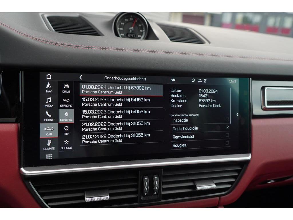 4-zone automatische airconditioning (9AE), 22 inch Sport Classic wiel diepzwart metallic gespoten (49B), Adaptieve cruise control inclusief noodgevalassistent (PW5), Adaptieve luchtvering met niveauregeling en hoogteverstelling inclusief Porsche Active Suspension Management (PASM) (1BK), Adaptieve sportstoelen (18-voudig elektrisch verstelbaar) met geïntegreerde hoofdsteunen en Memory Pakket (Q1J), Anti Blokkeer Systeem, Anti doorSlip Regeling, Apple Carplay/Android Auto, Autonomous Emergency Braking, BOSE Surround-Sound-System (9VL), Brake Assist System, Comfortstoelen vóór (14-voudig elektrisch verstelbaar) met Memory Pakket (Q2J), Comforttoegang (4F2), Elektronisch Stabiliteits Programma, Head-Up Display (KS1), Interieurpakket carbon (5MH), LED dagrijverlichting, Led-matrix-koplampen inclusief Porsche Dynamic Light System Plus (PDLS Plus) (8IU), Leder bi-color zwart-bordeauxrood (CB), ParkAssistent inclusief Surround View (KA6), ParkAssistent voor en achter inclusief achteruitrijcamera (KA2), Porsche Entry & Drive (4F2), Privacybeglazing (VW1), Rijstrookwisselhulp (7Y1), Soft-Close portieren (GZ2), Sportstoelen, elektrisch verstelbaar (Q2J), Stoelverwarming voorin (4A3), Stuurbekrachtiging Plus (QZ7), WiFi voorbereiding, Zelfdimmende binnen- en buitenspiegels (4L6), Zelfdimmende binnen- en buitenspiegels met geintegreerde regensensor (4L6), aanhanger assistent, achterbank in delen neerklapbaar, afdaal assistent, alarm klasse 1(startblokkering), aluminium delen exterieur, armsteun achter, bandenspanningscontrolesysteem, bestuurdersairbag, bots waarschuwing systeem, buitenspiegels elektrisch inklapbaar, buitenspiegels elektrisch verstel- en verwarmbaar, centrale deurvergrendeling met afstandsbediening, comfortstoel(en), connected services, dakspoiler, electronic climate controle, elektrisch bedienbare achterklep, elektrisch verstelbare voorstoel(en), hill hold functie, hoofd airbag(s) achter, hoofd airbag(s) voor, knie airbag(s), multimedia-voorbereiding, navigatiesysteem full map + hard disk, parkeersensor voor en achter, passagiersairbag, regensensor, rondomzicht camera, schakelmogelijkheid aan stuurwiel, sportstuur, spraakbediening, start/stop systeem, stuurbekrachtiging, stuurwiel multifunctioneel, vervolgbotsing preventie, voorstoelen in hoogte verstelbaar, warmtewerend glas, zij airbag(s) voor
