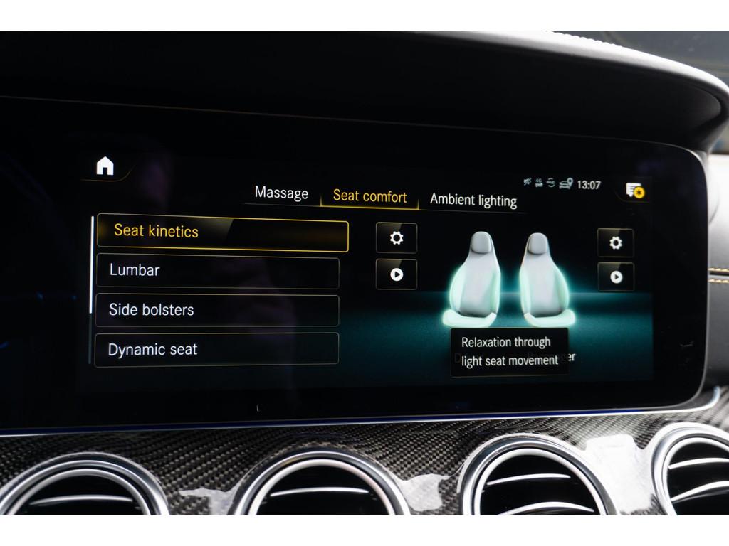 "Lichtmetalen velgen 5-spaaks 20""", AMG-styling, Accident Avoidance System, Achterbank in delen neerklapbaar, Achterbank verwarmd, Airbag(s) hoofd achter, Airbag(s) hoofd voor, Airbag(s) knie, Airbag(s) side achter, Airbag(s) side voor, Airbag bestuurder, Airbag passagier, Airco separaat achter, Alarmsysteem, Aluminium delen exterieur, Anti Blokkeer Systeem (ABS), Armsteun voor, Audio installatie, Audio installatie high-end, Audio installatie premium, Autotelefoonvoorbereiding met Bluetooth, Bandenspanningscontrolesysteem, Binnenspiegel automatisch dimmend, Bots herkenning en activatie, Bots waarschuwing systeem, Brake Assist System, Buitenspiegel(s) automatisch dimmend, Buitenspiegels elektrisch inklapbaar, Buitenspiegels elektrisch met geheugen, Buitenspiegels elektrisch verstelbaar, Buitenspiegels verwarmbaar, Carbonafwerking interieur, Carbon exterieur delen, Centrale deurvergrendeling met afstandsbediening, Connected services, Cruise control, Cruise control adaptief met Stop&Go, DAB-ontvanger, Dashboardcamera, Dimlichten automatisch, Dodehoekdetectie met correctie, Dodehoek detector, Draadloze telefoonlader, ENERGIZING-pakket plus, Electronic Brake Distribution (EBD), Electronic Stability Program (ESP), Electronic climate controle, Elektrische ramen voor, Elektrisch glazen panorama-dak, Elektrisch verstelbare stoel(en) met geheugen, Elektrisch verstelbare stuurkolom met geheugen, Elektrisch verstelbare voorstoel(en), Elektrisch zonnescherm achterruit, Elektronisch sperdifferentieel (EDS), Extra getint glas, File-assistent, Geluidwerend glas, Grootlicht-assistent, Houtafwerking interieur, Interieur voorverwarmingsinstallatie, Keyless entry, Keyless start, Kruisend verkeer detectie, LED achterlichten, LED dagrijverlichting, Lederen interieurdelen, Lederen stuurwiel, Lendesteunen (verstelbaar), Luxe lederen bekleding, Matrix LED koplampen, Metaalkleur parelmoer, Metallic lak, Multimedia-voorbereiding, Navigatie full map, Optie-pakket, Parkeersensor achter, Parkeersensor voor, Regensensor, Rijassistentiepakket, Rijassistentiepakket Plus, Rijstrooksensor met correctie, Rondomzicht camera, Ruitensproeiers verwarmbaar, Schakelmogelijkheid aan stuurwiel, Sluitbekrachtiging, Speciale kleur, Sportonderstel, Sportstoelen, Sportstuur, Spraakbediening, Start/stop systeem, Startblokkering, Stoel ventilatie voor, Stuurhulp, Stuurwiel multifunctioneel, Stuurwiel verwarmd, Telefoonintegratie premium, Tractie Controle Systeem (TCS), Uitwijk assistent, Verkeersbord detectie, Vermoeidheids herkenning, Verwarmde voorstoelen, Volledig digitaal instrumentenpaneel, Voorstoel(en) met massagefunctie, Voorstoelen in hoogte verstelbaar, Warmtewerend glas, WiFi voorbereiding, Zonnescherm zijruiten