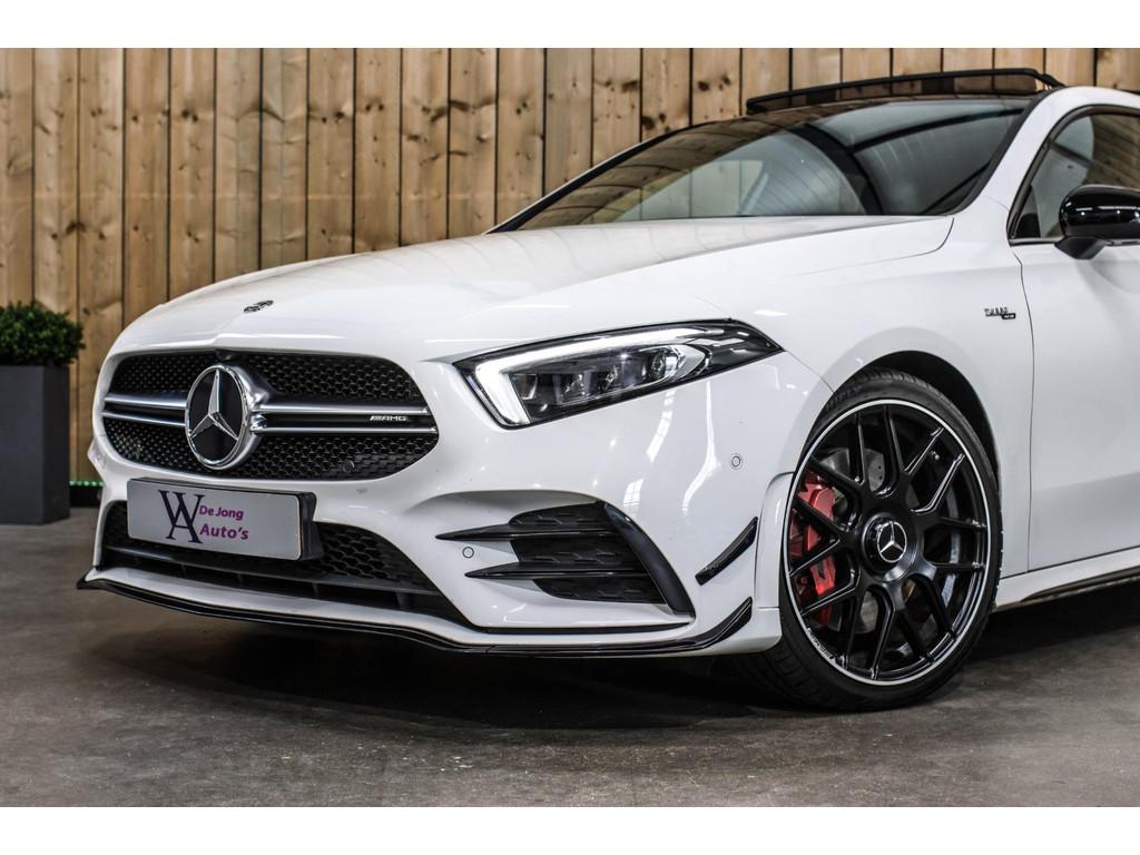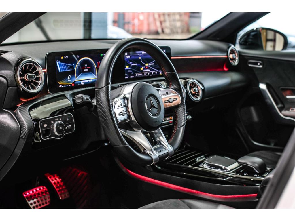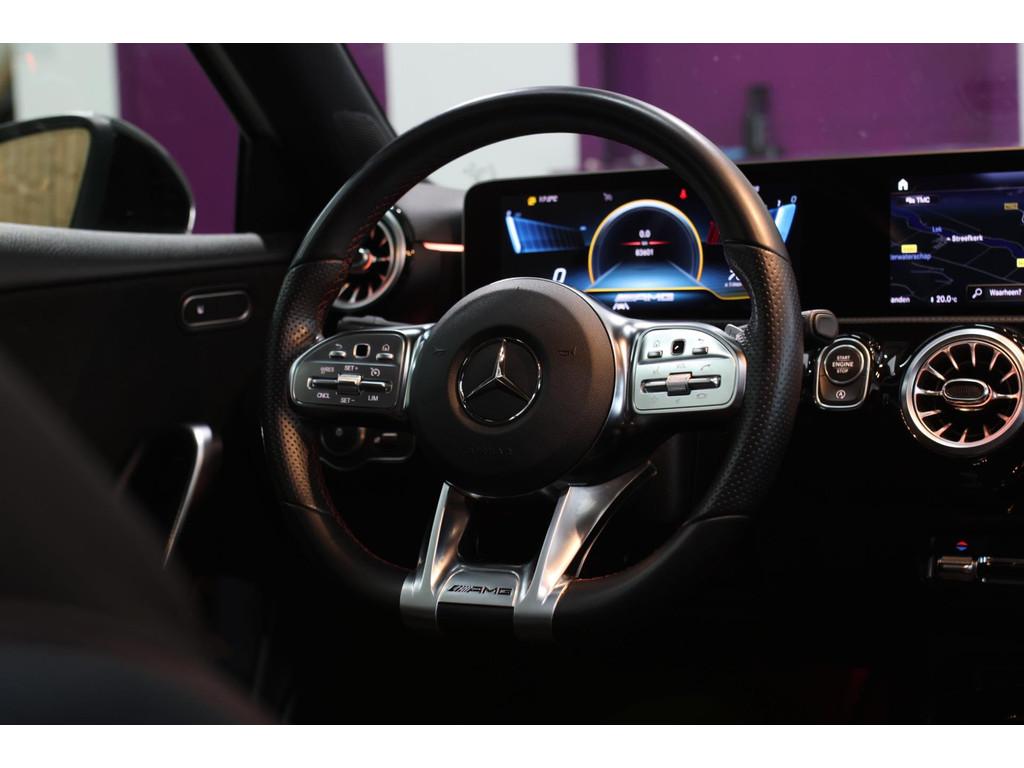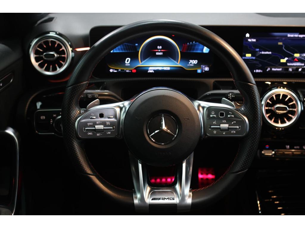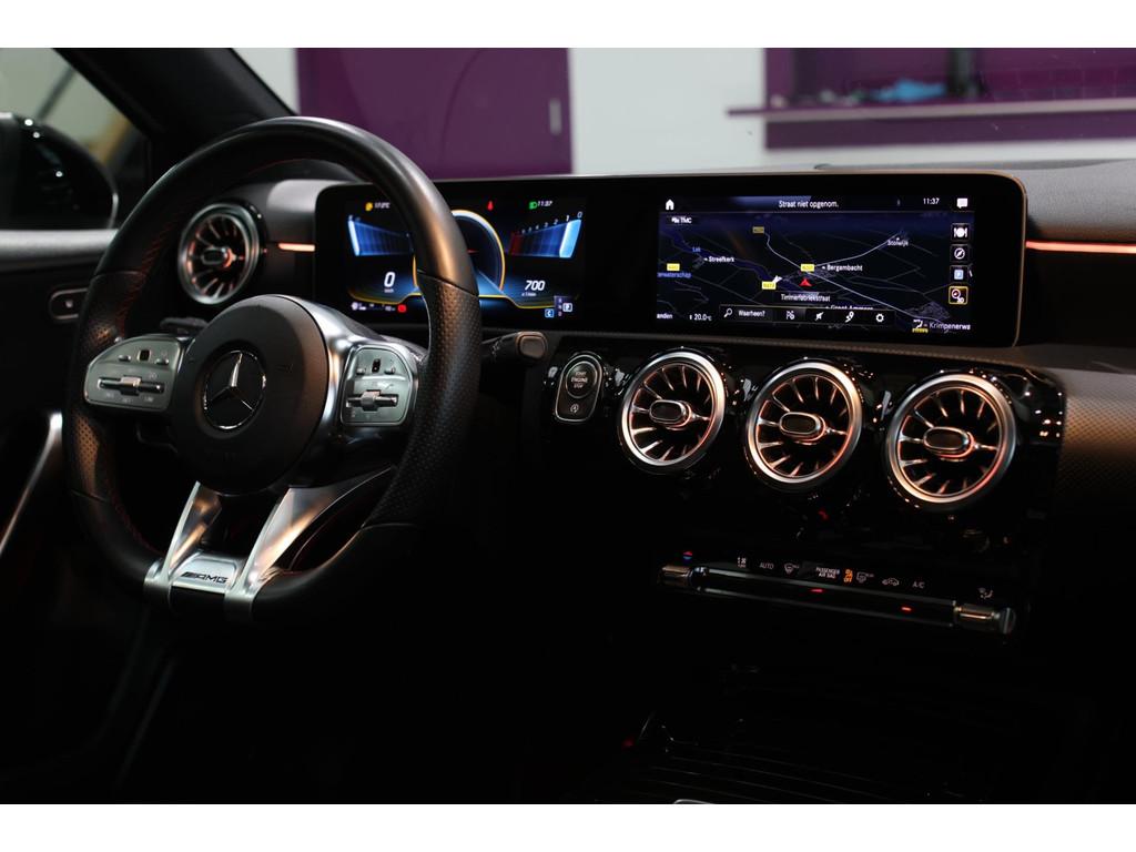 AMG-styling, Accident Avoidance System, Achterbank in delen neerklapbaar, Airbag(s) hoofd achter, Airbag(s) hoofd voor, Airbag(s) knie, Airbag(s) side voor, Airbag bestuurder, Airbag passagier, Aluminium interieur afwerking, Anti Blokkeer Systeem (ABS), Armsteun voor, Bandenspanningscontrolesysteem, Bots herkenning en activatie, Bots waarschuwing systeem, Brake Assist System, Chroom delen exterieur, Connected services, Cruise control, Dakspoiler, Dimlichten automatisch, Electronic Stability Program (ESP), Electronic climate controle, Elektrisch glazen panorama-dak, Extra getint glas, Keyless start, LED dagrijverlichting, LED koplampen, Lederen stuurwiel, Multimedia-voorbereiding, Parkeer-assistent, Parkeersensor achter, Parkeersensor voor, Radio, Regensensor, Rijstrooksensor met correctie, Side skirts, Sportonderstel, Sportstoelen, Sportstuur, Spraakbediening, Start/stop systeem, Startblokkering, Stof/kunstlederen bekleding, Stuurhulp, Stuurwiel multifunctioneel, Verkeersbord detectie, Verlaagde carrosserie, Verwarmde voorstoelen, Volledig digitaal instrumentenpaneel, Voorstoelen verwarmd, WiFi voorbereiding