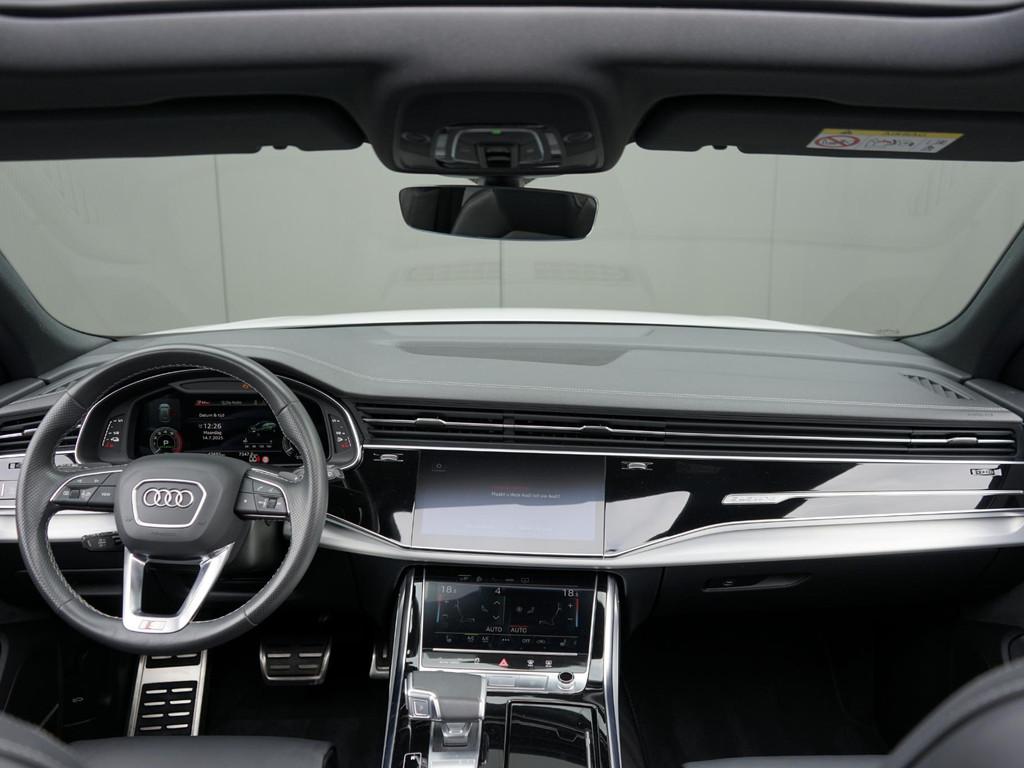 Achterbank plus (3NS), Adaptive Air Suspension (1BK), Anti Blokkeer Systeem, Audi Phone Box (9ZE), Audi active lane assist incl file assistent (6I6), Audi smartphone interface (IU1), Automatische airconditioning met vier zones (9AE), Autonomous Emergency Braking, Bang & Olufsen Premium soundsystem met 3D sound vóór (9VS), Bekleding leder "Valcona" met geruit patroon (N0Q), Bluetooth telefoonvoorbereiding, Buitenspiegelbuizing in carroseriekleur (6FA), Buitenspiegels, elektrisch inklapbaar en automatisch dimmend (6XK), Comfortsleutel (PGC), Contour/Ambiente lichtpakket (multicolor) (QQ2), Decorinleg, aluminium spectrum (7TF), Digitale radio ontvangst (QV3), Elektronisch Stabiliteits Programma, Gletsjerwit (2Y2Y), HD Matrix LED-koplampen (PXC), Interieurvoorverwarming (PK6), Koplampreinigingsinstallatie (8X1), Kunstleder bovenop dashboard en op interieurdelen onderin (7HQ), LED achterlichten, LED dagrijverlichting, Lane departure warning (6I3), Panoramadak (3FU), Parkeerassistent (7X5), Parkeerhulp voor en achter (7X2), Privacy glas (QL5), S Line exterieur, Scheidingsnet (3CX), Servosluiting portieren (GZ2), Snelheidslimietherkenning (QR9), Sportstuurwiel, driespaaks multifunctioneel in leder met schakelpaddels, verwarmbaar (1XP), S sportstoelen vóór (Q4Q), Trekhaak, elektrisch uitklapbaar (1D3), Velgen, gegoten lichtmetaal 10J x 23 "10-spaak-trapezium"-design Audi Sport (54J), WiFi voorbereiding, adaptief demping systeem, alarm klasse 3, aluminium delen exterieur, armsteun achter, armsteun voor, bandenspanningscontrolesysteem, bestuurdersairbag, binnenspiegel automatisch dimmend, bots herkenning en activatie, bots waarschuwing systeem, buitenspiegels elektrisch inklapbaar, buitenspiegels elektrisch verstel- en verwarmbaar, centrale deurvergrendeling met afstandsbediening, connected services, cruise control, dimlichten automatisch, electronic climate controle, elektrisch bedienbare achterklep, elektrisch bedienbare achterklep met sensorsturing, elektrische ramen voor en achter, elektrisch verstelbare bestuurdersstoel, elektrisch verstelbare passagiersstoel, grootlichtassistent, hill hold functie, hoofd airbag(s) achter, hoofd airbag(s) voor, hoofdsteunen actief, keyless entry, keyless start, koplampen adaptief, lederen stuurwiel, lendesteunen (verstelbaar), multimedia-voorbereiding, navigatiesysteem full map, oplaadmogelijkheid, parkeersensor achter, passagiersairbag, regensensor, ruitensproeiers verwarmbaar, schakelmogelijkheid aan stuurwiel, sportstuur, start/stop systeem, stuurbekrachtiging, stuur verstelbaar, stuurwiel multifunctioneel, volledig digitaal instrumentenpaneel, voorstoelen verwarmd, warmtewerend glas, zij airbag(s) voor