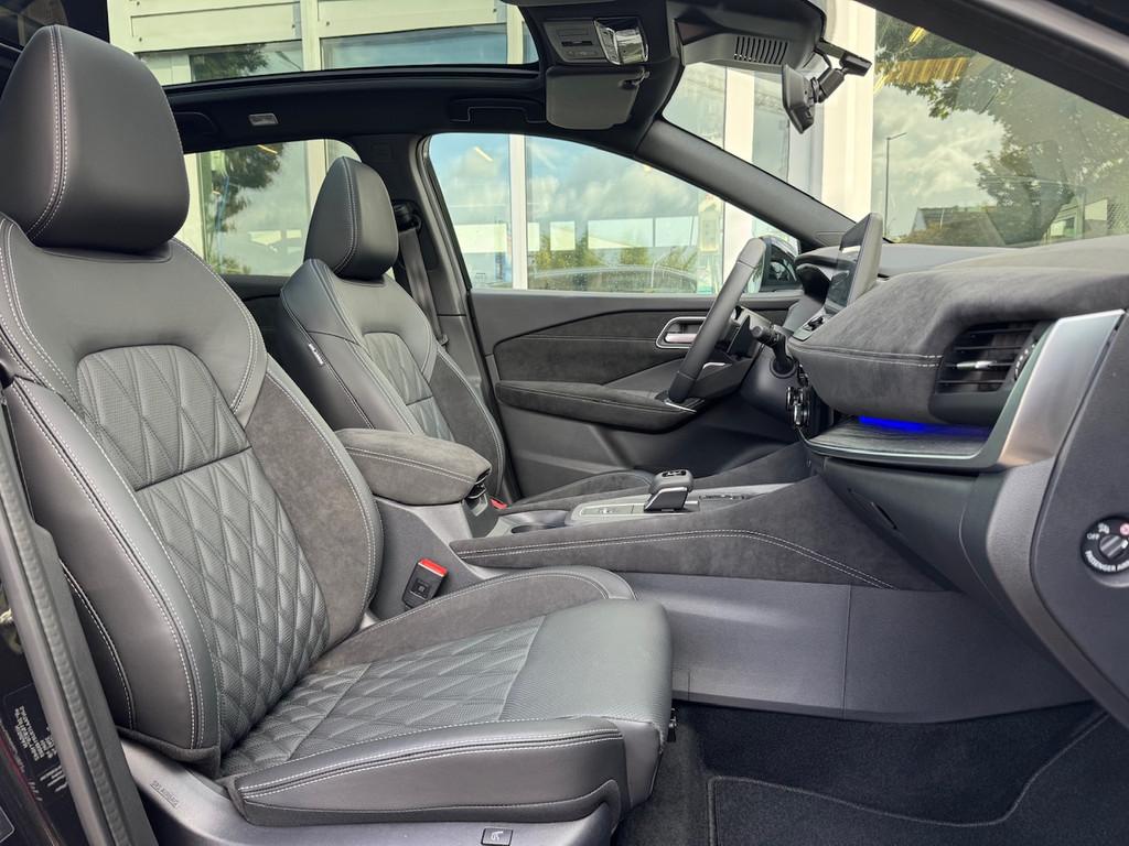 2x USB laadpoorten achter (1x type A, 1x type C), 2x USB laadpoorten voor, 3-punts veiligheidsgordels voor en achter, 9" NissanConnect Navigatie- en infotainmentsysteem, 12,3'' TFT digitaal instrumentenpaneel, 12V aansluitingen voor en in de bagageruimte, 20" diamant-geslepen lichtmetalen velgen met multi-Link ophanging, A-IVC Navigatie services, A-IVC Remote Control diensten en meldingen (3 jaar gratis), A-IVI NissanConnect Navigatiesysteem (9'' TFT touchscreen), ABS (Anti-blokkeersysteem), Achterbankleuning in delen neerklapbaar (60/40), Achteruitrijcamera met dynamische afstandsmarkering, Adaptive Front Lighting System (AFS), Alarmsysteem, Apple Carplay® & Android Auto® met kabel, Around View Monitor (AVM), Auto Speed Control Device (ASCD), Auto Speed Limit (ASL), Automatisch dimmende binnenspiegel, Automatische achterklep met voetsensor, Automatisch in- / uitschakelende koplampen, Back-up Collission intervention (BCI), Bandenreparatieset, Bandenspanningscontrolesysteem (TPMS), Bekerhouder achter (2x), Bekerhouder voor (2x), Blind Junction View (BJV), Blind Spot Warning & Intervention (BSW + BSI), Bluetooth® (telefoon en audio), Breakdown call, Buitenspiegelbehuizing en deurgrepen in carrosseriekleur, Buitenspiegels elektrisch inklapbaar, Buitenspiegels elektrisch verstelbaar en verwarmbaar, Centrale deurvergrendeling met afstandsbediening, Chromen raamomlijsting, Chromen sierstrip achterbumper, Chromen strip achterklep, Cross Traffic Alert (CTA), DRIVE ASSIST, Dakrails, Dakspoiler achter, Dashboard en deurpanelen leder (blauw), Digitale radio-ontvangst (DAB+), Draadloos Apple Carplay®, Draadloze smartphone oplader (15w), Drive modus functie (3 modi), Driver Attention Alert (DAA), EBD (Elektronische Remkrachtverdeler), ESP (Electronic Stability Program), Elektrische lendensteunverstelling voorstoelen (4-way), Elektrisch verstelbare bestuurdersstoel, Elektrisch verstelbare passagierstoel, Elektronische handrem, Elektronische stuurbekrachtiging, Emergency Stop Signal (Autohazard), Extra getint glas (achterste zijruiten en achterruit), Flexibele bagageruimte indeling (2 scheidingsplanken), Frontal Collision Warning (FCW), Gescheiden automatische airconditioning (2 zones), Gordelspanners en melding voor veiligheidsgordels, Haaienvin-antenne, Haken in de bagageruimte (4 op de bodem, 2 aan de zijkanten), Head-up display (10.8'' projectie), High Beam Assist (HBA), Hill Start Assist (HSA), Hill Start Assist + AutoHold functie, Hoedenplank, ISOFIX-bevestigingspunten achter (2x), In hoogte en diepte verstelbaar stuurwiel, Intelligent Cruise Control (ICC), Interieur ambianceverlichting uitgebreid (middenconsole en deuren), Interieurlijsten metaallook, LED achterlichten, LED achteruitrijlicht en knipperlicht achter, LED matrix koplampen met LED dagrijverlichting en geintegreerd knipperlicht, LED mistlampen voor, Lane Departure Warning & Prevention (LDW + LDP), Lane Side Support (LSS), Lichtsensor, Limited Slip Differential (LSD), Matzilver decoratiepaneel achterbumper, Metallic lak, Middenarmsteun achter met 2 bekerhouders, Middenarmsteun vóór met opbergvak, Middenconsole en armsteunen in PVC, Moving Object Detection (MOD), NBAS (Nissan Brake Assist System), Nappa volleder, gewatteerde stoelbekleding (zwart), Panoramisch glazen dak met elektrisch bedienbare zonwering, Parkeersensoren voor- en achterzijde, Portiergrepen met ontgrendelknop (Easy Access), Predictive Forward Collision Warning (PFCW), Predictive Front Emergency Braking met voetgangers- en fietsersherkenning (P-FEB), Premium BOSE® audiosysteem met 10 luidsprekers, Acoustimass® subwoofer en Apple Carplay® & Android, ProPILOT, Regensensor, START/STOP-systeem, Schakelflippers achter stuurwiel, Stuurwielbediening, Stuurwiel en versnellingspookknop met leder bekleed, Tankdeksel zonder dop, Traffic Sign Recognition (TSR), Vehicle Dynamic Control (VDC), Verlichting aan beide kanten in de bagageruimte, Verwarmbaar stuurwiel, Verwarmbare voorruit, Verwarmbare voorstoelen, Volledig automatische ruiten voor en achter met i-Key link, Voor-, zij- en gordijnairbags (uitschakelbare passagiersairbag), Voorstoelen met geheugenfunctie, Voorstoelen met massagefunctie, Wi-Fi hotspot (betaalde dienst), Zachte kniesteun (PVC), Zonnebrillenhouder in hemelbekleding, Zonnekleppen met make-up spiegel, Zonnekleppen met make-up spiegel, verlicht, Zwarte Hemelbekleding, eCall, i-Key (openen en sluiten zonder sleutel)