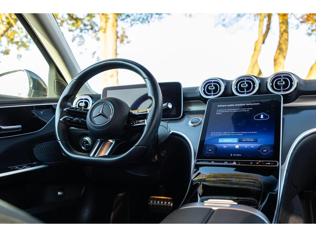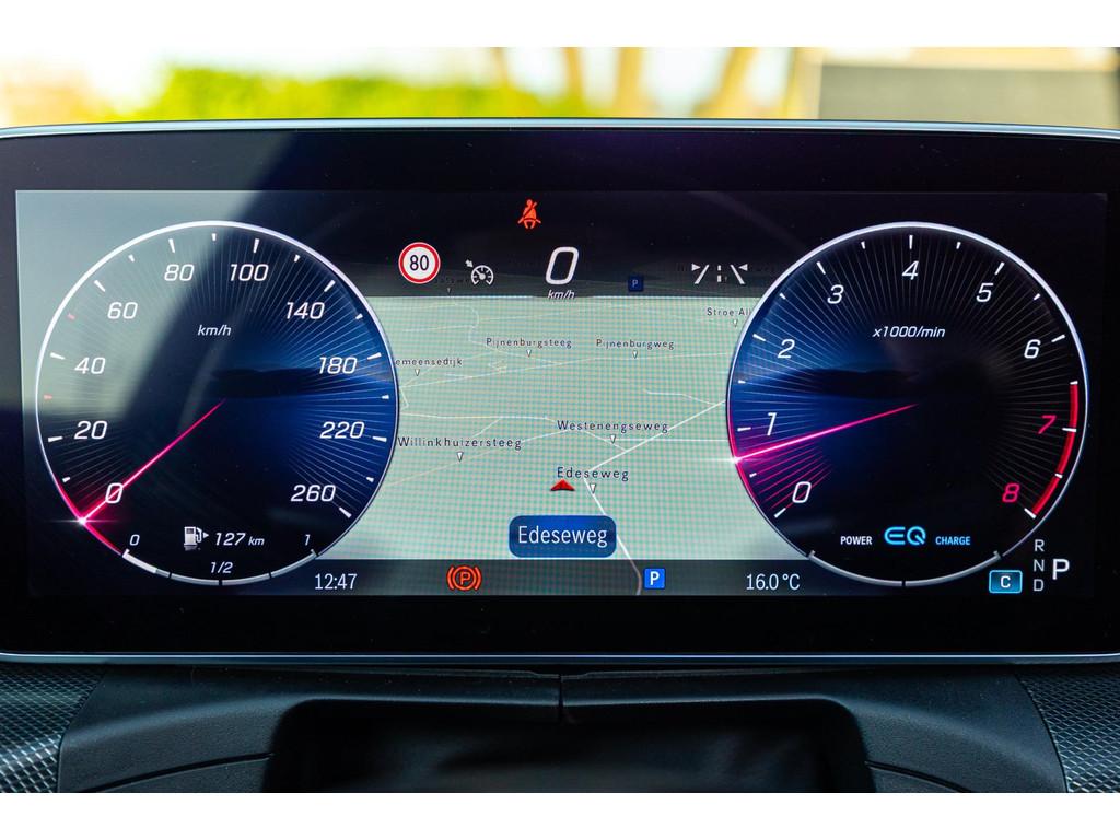 "Lichtmetalen velgen 5-spaaks 18""", AMG-styling, Accident Avoidance System, Achterbank in delen neerklapbaar, Achteruitrijcamera, Airbag(s) hoofd, Airbag(s) hoofd achter, Airbag(s) hoofd voor, Airbag(s) side voor, Airbag bestuurder, Airbag passagier, Airco automatisch, Alarmsysteem, Aluminium delen exterieur, Anti Blokkeer Systeem (ABS), Audio installatie, Bandenspanningscontrolesysteem, Binnenspiegel automatisch dimmend, Bots waarschuwing systeem, Buitenspiegel(s) automatisch dimmend, Buitenspiegels elektrisch inklapbaar, Buitenspiegels elektrisch verstelbaar, Buitenspiegels met verlichting, Buitenspiegels verwarmbaar, Centrale deurvergrendeling met afstandsbediening, Connected services, Cruise control, DAB-ontvanger, Dodehoek detector, Draadloze telefoonlader, Electronic Stability Program (ESP), Elektrische ramen achter, Elektrische ramen voor, Elektrisch glazen panorama-dak, Elektrisch verstelbare voorstoel(en), Extra getint glas, Grootlicht-assistent, Interieur voorverwarmingsinstallatie, Keyless start, Kleur zwart, LED dagrijverlichting, Lendesteunen (verstelbaar), Metallic lak, Multimedia-voorbereiding, Navigatie full map, Parkeer-assistent, Parkeersensor achter, Parkeersensor voor, Radio, Regensensor, Rijstrooksensor met correctie, Rondomzicht camera, Sportonderstel, Sportstoelen, Sportstuur, Spraakbediening, Startblokkering, Stof/kunstlederen bekleding, Stuurwiel multifunctioneel, Telefoonintegratie premium, Trekhaak, Verkeersbord detectie, Verlaagde carrosserie, Verwarmde voorstoelen, Volledig digitaal instrumentenpaneel