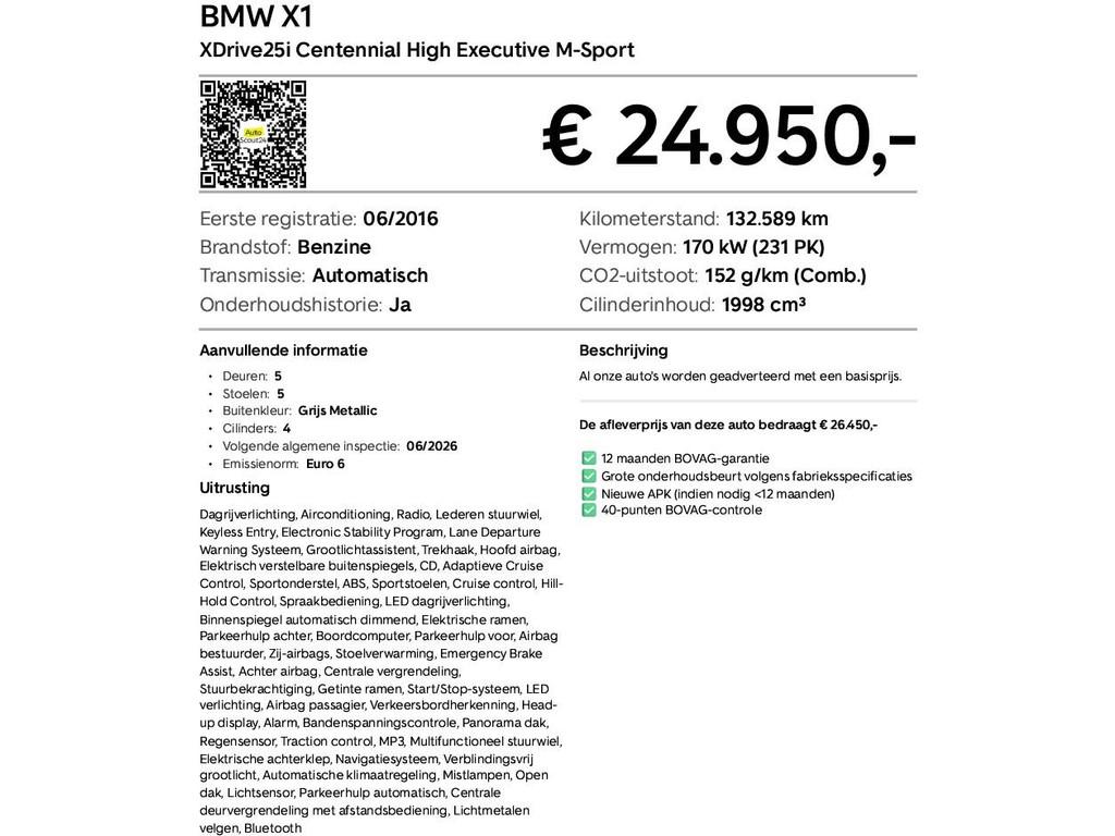 BMW X1 XDrive25i Centennial High Executive M-Sport|Panoramadak|Trekhaak|Harman Kardon|Leer|Stoelverwarming|Sportstoelen|HUD