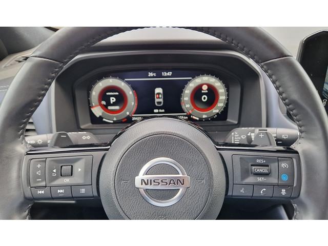 2x USB laadpoorten achter (1x type A, 1x type C), 2x USB laadpoorten voor, 3-punts veiligheidsgordels voor en achter, 9" NissanConnect Navigatie- en infotainmentsysteem, 12,3'' TFT digitaal instrumentenpaneel, 12V aansluitingen voor en in de bagageruimte, A-IVC Navigatie services, A-IVI NissanConnect Navigatiesysteem (9'' TFT touchscreen), ABS (Anti-blokkeersysteem), Achterbankleuning in delen neerklapbaar (60/40), Achteruitrijcamera met dynamische afstandsmarkering, Adaptive Front Lighting System (AFS), Alarmsysteem, Apple Carplay® & Android Auto® met kabel, Around View Monitor (AVM), Audiosysteem met Apple Carplay® & Android Auto®, USB-aansluiting, stuurwielbediening, 6 luidsprekers, Auto Speed Control Device (ASCD), Auto Speed Limit (ASL), Automatisch dimmende binnenspiegel, Automatische achterklep met voetsensor, Automatisch in- / uitschakelende koplampen, Back-up Collission intervention (BCI), Bandenreparatieset, Bandenspanningscontrolesysteem (TPMS), Bekerhouder achter (2x), Bekerhouder voor (2x), Blind Spot Warning & Intervention (BSW + BSI), Bluetooth® (telefoon en audio), Breakdown call, Buitenspiegelbehuizing en deurgrepen in carrosseriekleur, Buitenspiegels elektrisch inklapbaar, Buitenspiegels elektrisch verstelbaar en verwarmbaar, Centrale deurvergrendeling met afstandsbediening, Chromen raamomlijsting, Cross Traffic Alert (CTA), DRIVE ASSIST, Dakspoiler achter, Dashboard en deurpanelen leder (blauw), Digitale radio-ontvangst (DAB+), Draadloos Apple Carplay®, Draadloze smartphone oplader (15w), Drive modus functie (3 modi), Driver Attention Alert (DAA), EBD (Elektronische Remkrachtverdeler), ESP (Electronic Stability Program), Elektrische lendensteunverstelling bestuurdersstoel (2-way), Elektrisch verstelbare bestuurdersstoel, Elektronische handrem, Elektronische stuurbekrachtiging, Emergency Stop Signal (Autohazard), Extra getint glas (achterste zijruiten en achterruit), Flexibele bagageruimte indeling (2 scheidingsplanken), Frontal Collision Warning (FCW), Gescheiden automatische airconditioning (2 zones), Gordelspanners en melding voor veiligheidsgordels, Haaienvin-antenne, Haken in de bagageruimte (4 op de bodem, 2 aan de zijkanten), Half-lederen stoelbekleding (zwart/blauw), Head-up display (10.8'' projectie), High Beam Assist (HBA), Hill Start Assist (HSA), Hill Start Assist + AutoHold functie, Hoedenplank, ISOFIX-bevestigingspunten achter (2x), In hoogte en diepte verstelbaar stuurwiel, In hoogte verstelbare passagiersstoel, Intelligent Cruise Control (ICC), Interieur ambianceverlichting uitgebreid (middenconsole en deuren), Interieurlijsten metaallook, LED achterlichten, LED achteruitrijlicht en knipperlicht achter, LED matrix koplampen met LED dagrijverlichting en geintegreerd knipperlicht, Lane Departure Warning & Prevention (LDW + LDP), Lane Side Support (LSS), Lichtsensor, Limited Slip Differential (LSD), Matzilver decoratiepaneel achterbumper, Metallic lak, Middenarmsteun achter met 2 bekerhouders, Middenarmsteun vóór met opbergvak, Middenconsole en armsteunen in PVC, Moving Object Detection (MOD), NBAS (Nissan Brake Assist System), Parkeersensoren voor- en achterzijde, Portiergrepen met ontgrendelknop (Easy Access), Predictive Forward Collision Warning (PFCW), Predictive Front Emergency Braking met voetgangers- en fietsersherkenning (P-FEB), ProPILOT, Regensensor, START/STOP-systeem, Schakelflippers achter stuurwiel, Stuurwielbediening, Stuurwiel en versnellingspookknop met leder bekleed, Tankdeksel zonder dop, Traffic Sign Recognition (TSR), Vehicle Dynamic Control (VDC), Verlichting aan beide kanten in de bagageruimte, Voor-, zij- en gordijnairbags (uitschakelbare passagiersairbag), Zachte kniesteun (PVC), Zonnebrillenhouder in hemelbekleding, eCall, i-Key (openen en sluiten zonder sleutel)