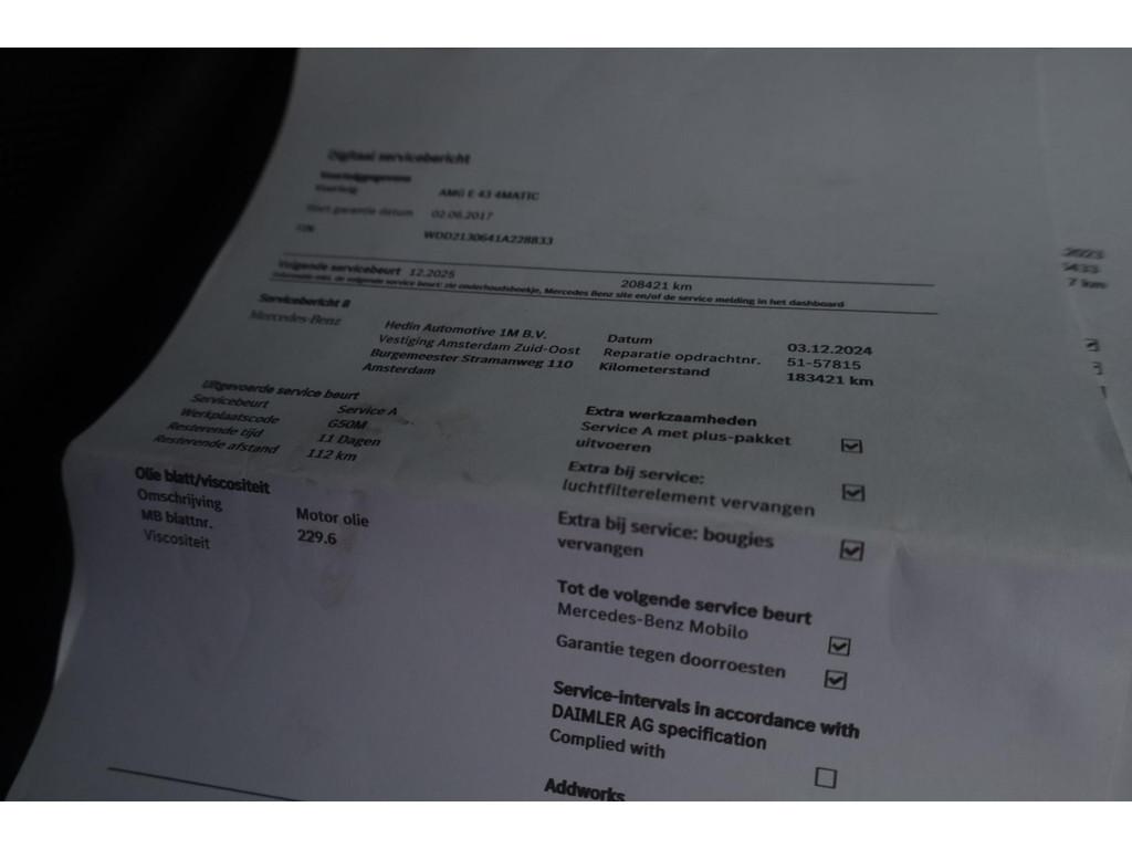 MERCEDES-BENZ E-klasse AMG 43 4MATIC Aut. | Panorama | Burmester | Adaptieve Cruise | Lederen Dash. | Luchtvering | Vol. Historie