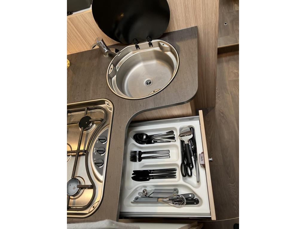 Achteruitrijd camera, Airbag, Airbag bestuurder, Airco, Anti Blokkeer Systeem (ABS), Audioinstallatie met CD-speler, Autotelefoonvoorbereiding, Boordcomputer, Buitenspiegels elektrisch verstelbaar, Centrale deurvergrendeling, Cruise control, DAB Radio, Douche, Electronic Stability Program (ESP), Elektrische ramen, Elektronische climate control, Extra verlichting, Hoofdsteunen voor, Keukenblok, Lederen bekleding, Lederen stuurwiel, Lichtmetalen velgen, Luifel, Mistlampen, Navigatiesysteem, Radio CD-speler, Stuurbekrachtiging, Toilet, Tractie Controle Systeem (TCS), Verstelbare (in hoogte) bestuurders stoel, Verstelbare stuurkolom, Zonnedak