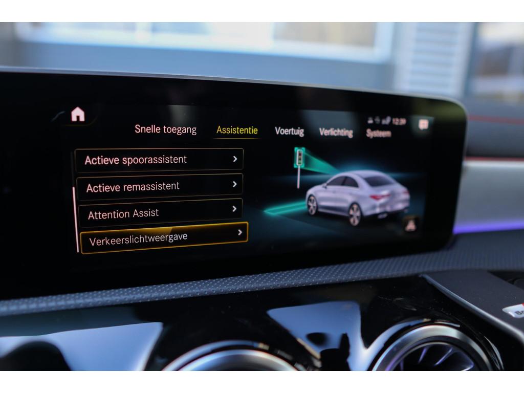 "Lichtmetalen velgen 18""", AMG-styling, Accident Avoidance System, Achterbank in delen neerklapbaar, Achteruitrijcamera, Airbag(s) hoofd achter, Airbag(s) hoofd voor, Airbag(s) knie, Airbag(s) side voor, Airbag bestuurder, Airbag passagier, Aluminium interieur afwerking, Anti Blokkeer Systeem (ABS), Armsteun achter, Armsteun voor, Bandenspanningscontrolesysteem, Bestuurdersstoel in hoogte verstelbaar, Binnenspiegel automatisch dimmend, Bots waarschuwing systeem, Buitenspiegel(s) automatisch dimmend, Buitenspiegels elektrisch inklapbaar, Buitenspiegels elektrisch verstelbaar, Buitenspiegels met verlichting, Buitenspiegels verwarmbaar, Connected services, Cruise control, DAB-ontvanger, Dimlichten automatisch, Electronic Stability Program (ESP), Electronic climate controle, Elektrisch glazen panorama-dak, Elektrisch verstelb. passagiersstoel met geheugen, Elektrisch verstelbare bestuurdersstoel met geheugen, Extra getint glas, Grootlicht-assistent, Keyless entry, Keyless start, Koplampen adaptief, LED achterlichten, LED dagrijverlichting, LED koplampen, Lederen stuurwiel, Lederen versnellingspook, Lendesteunen (verstelbaar), Matrix LED koplampen, Metallic lak, Multimedia-voorbereiding, Navigatie-systeem full map + hard disk, Parkeer-assistent, Parkeersensor achter, Parkeersensor voor, Passagiersstoel in hoogte verstelbaar, Radio, Regensensor, Rijstrooksensor met correctie, Schakelmogelijkheid aan stuurwiel, Sportstoelen, Sportstuur, Spraakbediening, Start/stop systeem, Startblokkering, Stof/kunstlederen bekleding, Stuurwiel multifunctioneel, Tractie Controle Systeem (TCS), Variabele stuuroverbrenging, Verkeersbord detectie, Verlaagde carrosserie, Vermoeidheids herkenning, Verwarmde voorstoelen, Volledig digitaal instrumentenpaneel