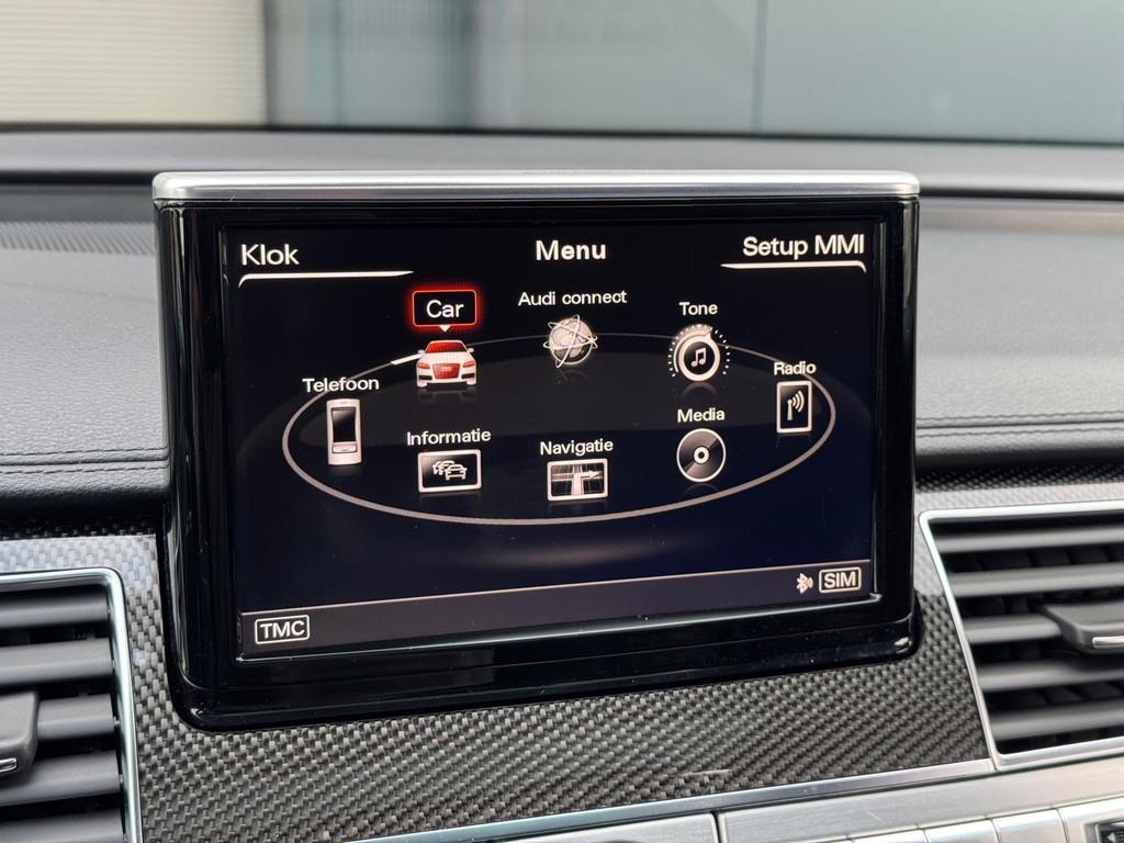 "Lichtmetalen velgen 20""", "Lichtmetalen velgen 21""", Achterbank verwarmd, Achteruitrijcamera, Airbag(s) hoofd achter, Airbag(s) hoofd voor, Airbag(s) side achter, Airbag(s) side voor, Airbag bestuurder, Airbag passagier, Airco automatisch, Alarm klasse 3, Aluminium interieur afwerking, Anti Blokkeer Systeem, Anti Blokkeer Systeem (ABS), Anti Slip Control, Audi Design Selection, Audio-navigatie full map, Audio installatie high-end, Audio installatie premium, Automatisch Sper Differentieel, Automatische niveauregeling, Autotelefoonvoorbereiding, Bang & Olufsen, Binnenspiegel automatisch dimmend, Boordcomputer, Buitenspiegel(s) automatisch dimmend, Buitenspiegels elektrisch inklapbaar, Buitenspiegels elektrisch verstelbaar, Buitenspiegels verwarmbaar, Carbonafwerking interieur, Cruise control, Cruise control adaptief, DVD-wisselaar, Dimlichten automatisch, Dodehoek detector, Electronic Brake Distribution, Electronic Stability Program, Electronic Stability Program (ESP), Electronic climate controle, Elektrisch bedienbare achterklep, Elektrische ramen voor, Elektrisch glazen schuif-/kanteldak, Elektrisch schuif-/kanteldak met zonnepanelen, Elektrisch verstelbare stoel(en) met geheugen, Elektrisch zonnescherm achterruit, Elektronisch sperdifferentieel, Entertainment system, Geluidsisolerend glas, Grootlicht-assistent, Halogeen mistlampen, Hoofdsteunen actief, Keramische remschijven, Keyless entry, LED koplampen, Lederen bekleding, Lederen stuurwiel, Lendesteunen (verstelbaar), Luchtvering, Luxe lederen bekleding, Luxe lederen interieur, Metallic lak, Nachtzicht-assistent, Parkeersensor voor en achter, Regensensor, S-Line exterieur, S-Line interieur, S Line exterieur, Schakelmogelijkheid aan stuurwiel, Speciale kleur, Sperdifferentieel, Start/stop systeem, Stoel ventilatie voor, Stuurwiel multifunctioneel, Tractie Controle Systeem (TCS), Variabele stuuroverbrenging, Veersysteem actief, Voorstoel(en) met massagefunctie, Voorstoelen