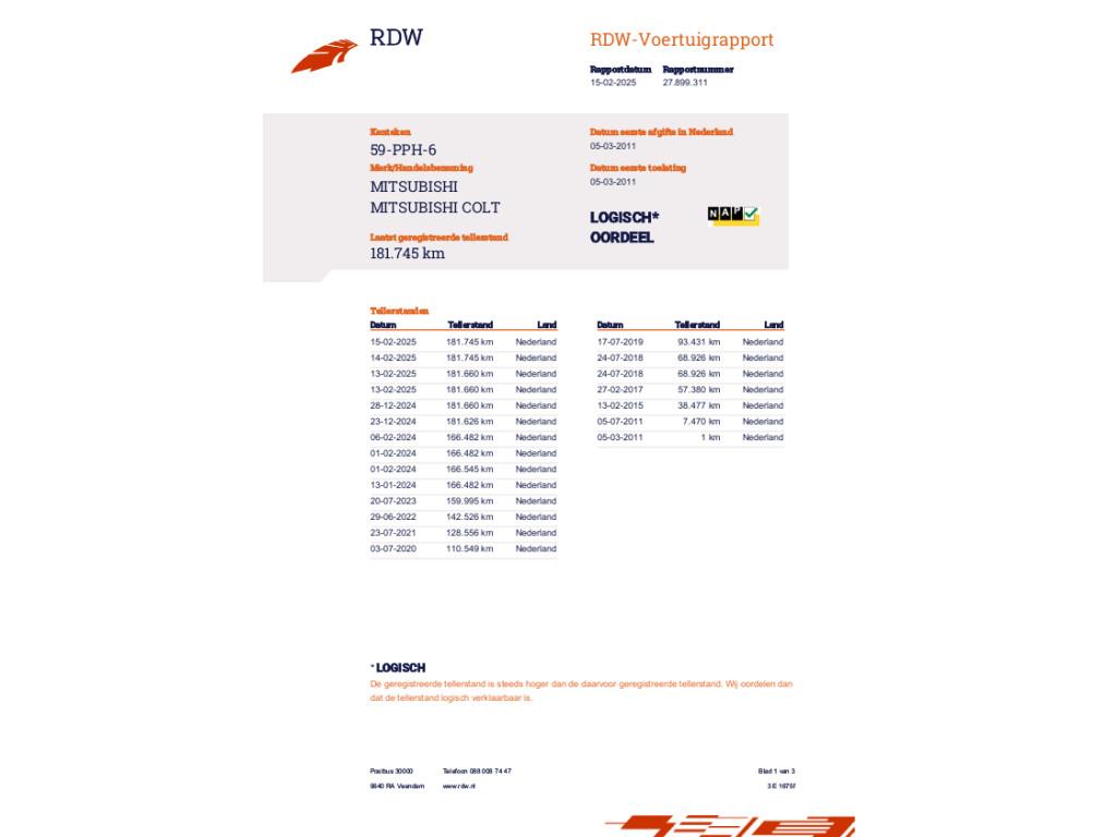 Mileage 181.745 NAP checked