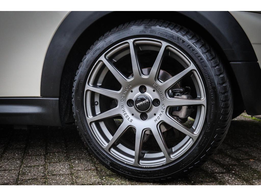 Airbag(s) hoofd voor, Airbag(s) side voor, Airbag bestuurder, Airbag passagier, Airco, Airconditioning (530), Alarm klasse 1(startblokkering), Anti Blokkeer Systeem, Anti doorSlip Regeling, Armsteun voor, Audioinstallatie met cd-speler, Bandenspanningscontrolesysteem, Boordcomputer, Boordcomputer (550), Buitenspiegels elektrisch verstelbaar, Buitentemperatuurmeter, Chrome Line Exterieur (346), Chroom delen exterieur, Cruise control, Elektrische ramen voor, Elektronisch Stabiliteits Programma, Elektronische remkrachtverdeling, Leder stuurwiel (240), Lichtmetalen velgen 15", Mistlampen voor (520), Multifunctioneel stuurwiel (249), Multimedia-voorbereiding, Navigatiesysteem uitneembaar, Radio MINI Boost met CD speler (6FC), Radio cd speler, Start/stop systeem, Stuurbekrachtiging, centrale vergrendeling met afstandsbediening, mistlampen voor, stuur leder, stuur multifunctioneel
