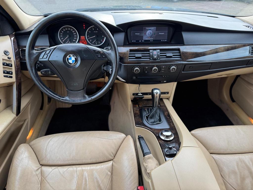 BMW 5-serie Touring 525i High Executive | Schuifdak | Parkeersensoren | Navigatie | Elektrische leder stoelen | 17 inch | Xenon