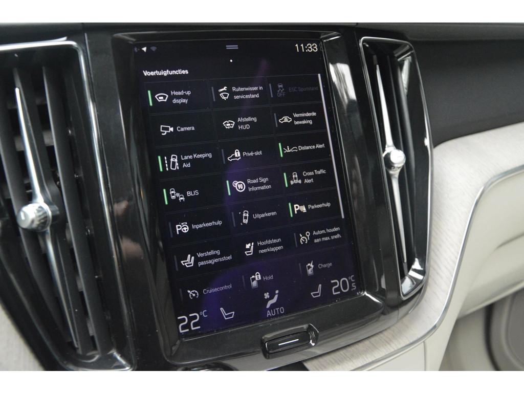 "Lichtmetalen velgen 19""", Accident Avoidance System, Accukoeling, Accuverwarming, Achterbank in delen neerklapbaar, Achteropkomend verkeer waarschuwing, Achteruitrij assistent, Achteruitrijcamera, Active Cornering Enhancement (ACE), Adaptief Demping Systeem (ADS), Afdaal assistent, Airbag(s) hoofd achter, Airbag(s) hoofd voor, Airbag(s) knie, Airbag(s) side voor, Airbag bestuurder, Airbag passagier, Anti Blokkeer Systeem (ABS), Armsteun achter, Armsteun voor, Audio installatie, Autotelefoonvoorbereiding met Bluetooth, Bandenspanningscontrolesysteem, Binnenspiegel automatisch dimmend, Boordcomputer, Bots herkenning en activatie, Bots waarschuwing systeem, Brake Assist System, Buitenspiegel(s) automatisch dimmend, Buitenspiegels elektrisch inklapbaar, Buitenspiegels elektrisch verstelbaar, Buitenspiegels met verlichting, Buitenspiegels verwarmbaar, Business Pack Connect, Centrale deurvergrendeling met afstandsbediening, Chroom delen exterieur, Connect Pack, Connected services, Cruise control, Cruise control adaptief, Dakrails, Dimlichten automatisch, Dodehoek detector, Electronic Brake Distribution (EBD), Electronic Stability Program (ESP), Electronic climate controle, Elektrische ramen voor, Elektrisch glazen panorama-dak, Elektrisch verstelb. passagiersstoel met geheugen, Elektrisch verstelbare bestuurdersstoel met geheugen, Elektrisch verstelbare passagiersstoel, Extra getint glas, File-assistent, Grootlicht-assistent, Head-up display, Hill hold-functie, Hoofdsteunen actief, Houtafwerking interieur, Inscription Plus Line, IntelliSafe Surround, Intellisafe Pro Line, Interieur voorverwarmingsinstallatie, Koplampen adaptief, LED achterlichten, LED dagrijverlichting, LED koplampen, LED koplampen adaptief, Lederen bekleding, Lederen stuurwiel, Lederen versnellingspook, Lendesteunen (verstelbaar), Luchtvering, Luxe lederen bekleding, Metallic lak, Multimedia-voorbereiding, Navigatie-systeem full map + hard disk, Oplaadmogelijkheid, Parkeer-assistent, Parkeersensor achter, Premium kleur, Regensensor, Rijstrooksensor met correctie, Rondomzicht camera, Side Impact Protection System, Spraakbediening, Start/stop systeem, Startblokkering, Stoel ventilatie voor, Stuurwiel multifunctioneel, Telefoonintegratie premium, Tractie Controle Systeem (TCS), Uitwijk assistent, Verkeersbord detectie, Vermoeidheids herkenning, Verwarmde voorstoelen, Volledig digitaal instrumentenpaneel, Volvo on Call, Voorstoelen in hoogte verstelbaar, WiFi voorbereiding, trekhaak