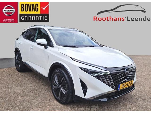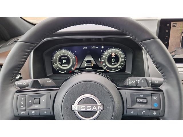 2x USB laadpoorten achter (1x type A, 1x type C), 2x USB laadpoorten voor, 3-punts veiligheidsgordels voor en achter, 9" NissanConnect Navigatie- en infotainmentsysteem, 12,3'' TFT digitaal instrumentenpaneel, 12V aansluitingen voor en in de bagageruimte, 19" diamant-geslepen lichtmetalen velgen, A-IVC Navigatie services, A-IVI NissanConnect Navigatiesysteem (9'' TFT touchscreen), ABS (Anti-blokkeersysteem), Achterbankleuning in delen neerklapbaar (60/40), Achteruitrijcamera met dynamische afstandsmarkering, Adaptive Front Lighting System (AFS), Alarmsysteem, Apple Carplay® & Android Auto® met kabel, Around View Monitor (AVM), Audiosysteem met Apple Carplay® & Android Auto®, USB-aansluiting, stuurwielbediening, 6 luidsprekers, Auto Speed Control Device (ASCD), Auto Speed Limit (ASL), Automatisch dimmende binnenspiegel, Automatische achterklep met voetsensor, Automatisch in- / uitschakelende koplampen, Back-up Collission intervention (BCI), Bandenreparatieset, Bandenspanningscontrolesysteem (TPMS), Bekerhouder achter (2x), Bekerhouder voor (2x), Blind Junction View (BJV), Blind Spot Warning & Intervention (BSW + BSI), Bluetooth® (telefoon en audio), Breakdown call, Buitenspiegelbehuizing en deurgrepen in carrosseriekleur, Buitenspiegels elektrisch inklapbaar, Buitenspiegels elektrisch verstelbaar en verwarmbaar, Centrale deurvergrendeling met afstandsbediening, Chromen raamomlijsting, Chromen sierstrip achterbumper, Chromen strip achterklep, Cross Traffic Alert (CTA), DRIVE ASSIST, Dakrails, Dakspoiler achter, Digitale radio-ontvangst (DAB+), Draadloos Apple Carplay®, Draadloze smartphone oplader (15w), Drive modus functie (3 modi), Driver Attention Alert (DAA), EBD (Elektronische Remkrachtverdeler), ESP (Electronic Stability Program), Elektrische lendensteunverstelling bestuurdersstoel (2-way), Elektrische lendensteunverstelling passagiersstoel (2-way), Elektrisch verstelbare bestuurdersstoel, Elektronische handrem, Elektronische stuurbekrachtiging, Emergency Stop Signal (Autohazard), Extra getint glas (achterste zijruiten en achterruit), Flexibele bagageruimte indeling (2 scheidingsplanken), Frontal Collision Warning (FCW), Gescheiden automatische airconditioning (2 zones), Gordelspanners en melding voor veiligheidsgordels, Haaienvin-antenne, Haken in de bagageruimte (4 op de bodem, 2 aan de zijkanten), Head-up display (10.8'' projectie), High Beam Assist (HBA), Hill Start Assist (HSA), Hill Start Assist + AutoHold functie, Hoedenplank, ISOFIX-bevestigingspunten achter (2x), In hoogte en diepte verstelbaar stuurwiel, In hoogte verstelbare passagiersstoel, Intelligent Cruise Control (ICC), Interieur ambianceverlichting uitgebreid (middenconsole en deuren), Interieurlijsten metaallook, LED achterlichten, LED achteruitrijlicht en knipperlicht achter, LED matrix koplampen met LED dagrijverlichting en geintegreerd knipperlicht, Lane Departure Warning & Prevention (LDW + LDP), Lane Side Support (LSS), Lichtsensor, Limited Slip Differential (LSD), Metallic lak, Middenarmsteun achter met 2 bekerhouders, Middenarmsteun vóór met opbergvak, Middenconsole en armsteunen in PVC, Moving Object Detection (MOD), NBAS (Nissan Brake Assist System), Parkeersensoren voor- en achterzijde, Portiergrepen met ontgrendelknop (Easy Access), Predictive Forward Collision Warning (PFCW), Predictive Front Emergency Braking met voetgangers- en fietsersherkenning (P-FEB), ProPILOT, Regensensor, START/STOP-systeem, Stuurwielbediening, Stuurwiel en versnellingspookknop met leder bekleed, Tankdeksel zonder dop, Traffic Sign Recognition (TSR), Vehicle Dynamic Control (VDC), Verlichting aan beide kanten in de bagageruimte, Verwarmbaar stuurwiel, Verwarmbare voorruit, Verwarmbare voorstoelen, Voor-, zij- en gordijnairbags (uitschakelbare passagiersairbag), Zachte kniesteun (PVC), Zonnebrillenhouder in hemelbekleding, Zonnekleppen met make-up spiegel, Zonnekleppen met make-up spiegel, verlicht, eCall, i-Key (openen en sluiten zonder sleutel)