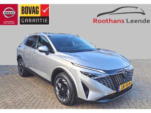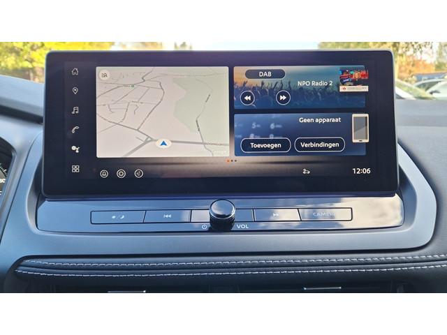 2x USB laadpoorten achter (1x type A, 1x type C), 2x USB laadpoorten voor, 3-punts veiligheidsgordels voor en achter, 9" NissanConnect Navigatie- en infotainmentsysteem, 12,3'' TFT digitaal instrumentenpaneel, 12V aansluitingen voor en in de bagageruimte, 18" Diamant-Cut lichtmetalen velgen, A-IVC Navigatie services, A-IVI NissanConnect Navigatiesysteem (9'' TFT touchscreen), ABS (Anti-blokkeersysteem), Achterbankleuning in delen neerklapbaar (60/40), Achteruitrijcamera met dynamische afstandsmarkering, Adaptive Front Lighting System (AFS), Alarmsysteem, All-season banden, Apple Carplay® & Android Auto® met kabel, Around View Monitor (AVM), Audiosysteem met Apple Carplay® & Android Auto®, USB-aansluiting, stuurwielbediening, 6 luidsprekers, Auto Speed Control Device (ASCD), Auto Speed Limit (ASL), Automatisch dimmende binnenspiegel, Automatisch in- / uitschakelende koplampen, Back-up Collission intervention (BCI), Bandenreparatieset, Bandenspanningscontrolesysteem (TPMS), Bekerhouder achter (2x), Bekerhouder voor (2x), Blind Junction View (BJV), Blind Spot Warning & Intervention (BSW + BSI), Bluetooth® (telefoon en audio), Breakdown call, Buitenspiegelbehuizing en deurgrepen in carrosseriekleur, Buitenspiegels elektrisch inklapbaar, Buitenspiegels elektrisch verstelbaar en verwarmbaar, Centrale deurvergrendeling met afstandsbediening, Chromen raamomlijsting, Chromen sierstrip achterbumper, Cold Pack (Stoel-Stuur-Voorruit Verw), Cross Traffic Alert (CTA), Dakspoiler achter, Dashboard en deurpanelen leder (zwart), Digitale radio-ontvangst (DAB+), Draadloos Apple Carplay®, Drive modus functie (3 modi), Driver Attention Alert (DAA), EBD (Elektronische Remkrachtverdeler), ESP (Electronic Stability Program), Elektrische lendensteunverstelling bestuurdersstoel (2-way), Elektronische handrem, Elektronische stuurbekrachtiging, Emergency Stop Signal (Autohazard), Extra getint glas (achterste zijruiten en achterruit), Flexibele bagageruimte indeling (2 scheidingsplanken), Frontal Collision Warning (FCW), Full LED koplampen met LED dagrijverlichting en halogeen knipperlicht, Gescheiden automatische airconditioning (2 zones), Gordelspanners en melding voor veiligheidsgordels, Haaienvin-antenne, Haken in de bagageruimte (4 op de bodem, 2 aan de zijkanten), High Beam Assist (HBA), Hill Start Assist (HSA), Hill Start Assist + AutoHold functie, Hoedenplank, ISOFIX-bevestigingspunten achter (2x), In hoogte en diepte verstelbaar stuurwiel, In hoogte verstelbare bestuurdersstoel (manueel), In hoogte verstelbare passagiersstoel, Intelligent Cruise Control (ICC), Interieur ambianceverlichting (middenconsole), Interieurlijsten metaallook, LED achterlichten, Lane Departure Warning & Prevention (LDW + LDP), Lane Side Support (LSS), Lichtsensor, Limited Slip Differential (LSD), Metallic lak, Middenarmsteun achter met 2 bekerhouders, Middenarmsteun vóór met opbergvak, Middenconsole en armsteunen in PVC, Moving Object Detection (MOD), NBAS (Nissan Brake Assist System), Parkeersensoren voor- en achterzijde, Portiergrepen met ontgrendelknop (Easy Access), Predictive Forward Collision Warning (PFCW), Predictive Front Emergency Braking met voetgangers- en fietsersherkenning (P-FEB), ProPILOT, Regensensor, START/STOP-systeem, Schakelflippers achter stuurwiel, Stoel verwarming voor, Stoffen stoelbekleding (zwart/grijs), Stuur verwarming, Stuurwielbediening, Stuurwiel en versnellingspookknop met leder bekleed, Tankdeksel zonder dop, Traffic Sign Recognition (TSR), Vehicle Dynamic Control (VDC), Verlichting aan beide kanten in de bagageruimte, Voor-, zij- en gordijnairbags (uitschakelbare passagiersairbag), Voorruit verwarming, Zachte kniesteun (PVC), Zonnebrillenhouder in hemelbekleding, Zonnekleppen met make-up spiegel, Zonnekleppen met make-up spiegel, verlicht, eCall, i-Key (openen en sluiten zonder sleutel)