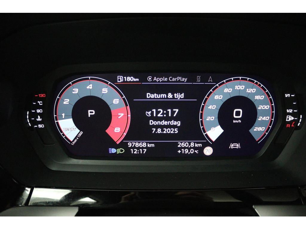 "Lichtmetalen velgen 5-spaaks 17""", Accident Avoidance System, Achterbank in delen neerklapbaar, Airbag(s) hoofd achter, Airbag(s) hoofd voor, Airbag(s) side voor, Airbag bestuurder, Airbag passagier, Aluminium delen exterieur, Aluminium interieur afwerking, Anti Blokkeer Systeem (ABS), Apple CarPlay, Armsteun voor, Audio installatie premium, Bandenspanningscontrolesysteem, Bestuurdersstoel in hoogte verstelbaar, Bluetooth telefoonvoorbereiding, Brake Assist System, Buitenspiegels elektrisch verstelbaar, Buitenspiegels in carrosseriekleur, Buitenspiegels verwarmbaar, Carplay, Centrale deurvergrendeling met afstandsbediening, Connected services, Cruise control, Cruise control adaptief met Stop&Go, DAB-ontvanger, Dakspoiler, Dimlichten automatisch, Draadloze telefoonlader, Electronic Brake Distribution (EBD), Electronic Stability Program (ESP), Electronic climate controle, Elektrisch glazen panorama-dak, Elektrisch verstelbare bestuurdersstoel, Isofix, Isofix-bevestigingssysteem voor kinderzitjes, Kleur parelmoer, Koplampen adaptief, LED achterlichten, LED dagrijverlichting, Lederen stuurwiel, Matrix LED koplampen, Metallic lak, Mirror-Link, Multimedia-voorbereiding, Navigatie full map, Navigatiesysteem Professional, Panoramadak, Parkeersensor achter, Parkeersensor voor, Passagiersstoel in hoogte verstelbaar, Radio, Regensensor, Rijstrooksensor, Ruitensproeiers verwarmbaar, S Line exterieur, Sportonderstel, Sportstoelen, Sportstuur, Start/stop systeem, Startblokkering, Stof/kunstlederen bekleding, Stuurbekrachtiging, Stuurhulp, Stuurwiel multifunctioneel, Telefoonintegratie premium, Tractie Controle Systeem (TCS), Uitwijk assistent, Verkeersbord detectie, Volledig digitaal instrumentenpaneel, Warmtewerende voorruit, WiFi voorbereiding, achterbank in delen neerklapbaar, electronic climate controle, onderhoudsboekjes aanwezig, parkeersensor voor en achter