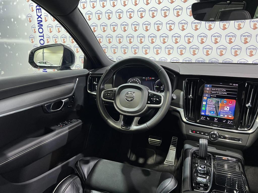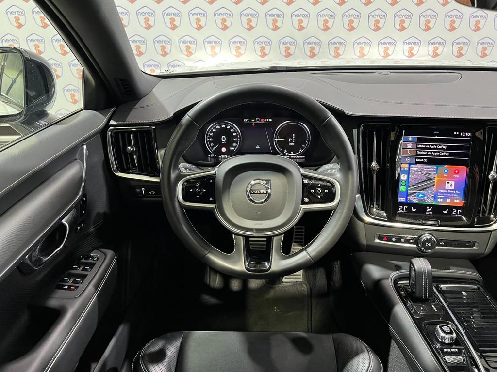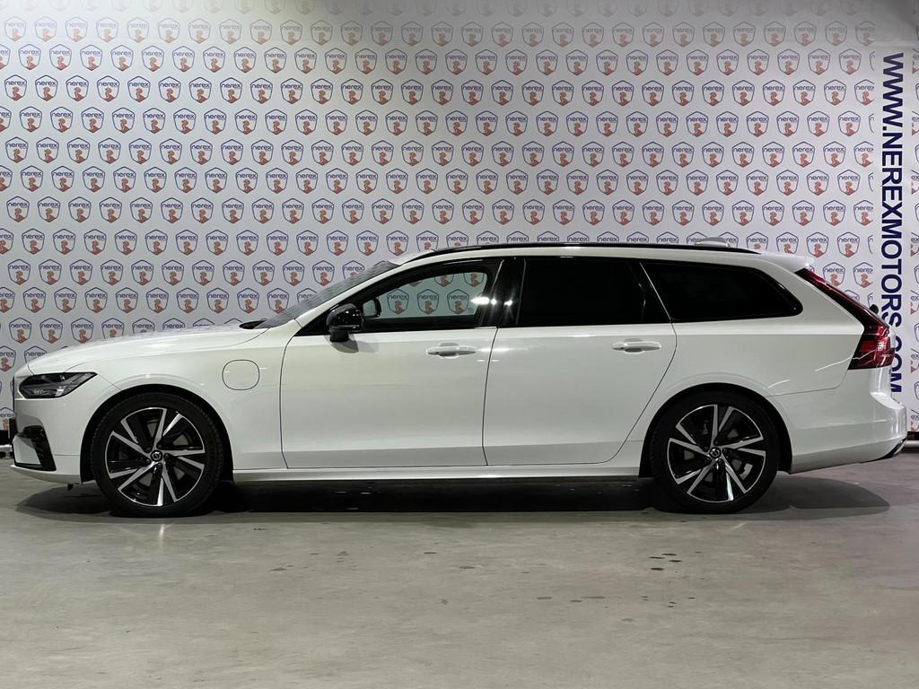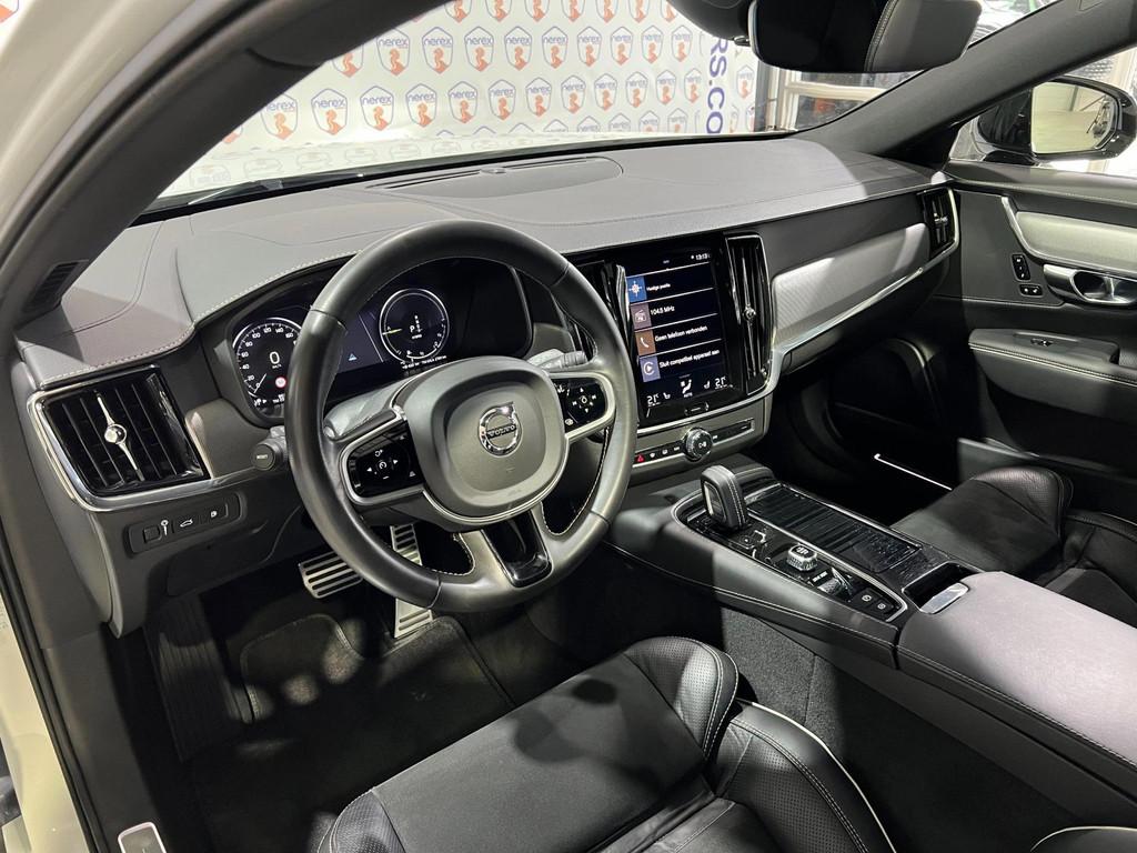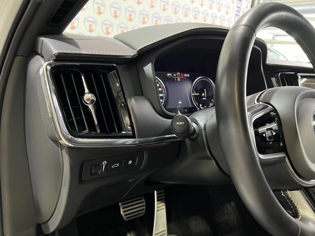 "Lichtmetalen velgen 5-spaaks 18""", Accident Avoidance System, Achterbank in delen neerklapbaar, Achterbank verwarmd, Achteropkomend verkeer waarschuwing, Achteruitrij assistent, Achteruitrijcamera, Airbag(s) hoofd achter, Airbag(s) hoofd voor, Airbag(s) knie, Airbag(s) side voor, Airbag bestuurder, Airbag passagier, Aluminium interieur afwerking, Anti Blokkeer Systeem (ABS), Armsteun achter, Armsteun voor, Audio installatie, Audio installatie premium, Autotelefoonvoorbereiding met Bluetooth, Bagagedek, Bandenspanningscontrolesysteem, Bestuurdersstoel in hoogte verstelbaar, Binnenspiegel automatisch dimmend, Boordcomputer, Bots herkenning en activatie, Bots waarschuwing systeem, Brake Assist System, Buitenspiegels elektrisch verstelbaar, Buitenspiegels verwarmbaar, Climate Pro Pack, Connected services, DAB-ontvanger, Dakrails, Dimlichten automatisch, Dodehoekdetectie met correctie, Electronic Brake Distribution (EBD), Electronic Stability Program (ESP), Electronic climate controle, Elektrisch bedienbare achterklep met sensorsturing, Elektrische ramen achter, Elektrische ramen voor, Elektrisch verstelb. passagiersstoel met geheugen, Elektrisch verstelbare bestuurdersstoel met geheugen, Geluidwerend glas, Hill hold-functie, Hoofdsteunen actief, Interieur voorverwarmingsinstallatie, Keyless Drive, Keyless Start, Keyless entry, Keyless start, Koplamp LED, Koplampen adaptief, Koplampreiniging, Kruisend verkeer detectie, LED achterlichten, LED dagrijverlichting, LED koplampen, Lederen/alcantara bekleding, Lederen interieurdelen, Lederen stuurwiel, Lederen versnellingspook, Lendesteunen (verstelbaar), Lighting Pack, Metallic lak, Multimedia-voorbereiding, Navigatie-systeem full map + hard disk, Oplaadmogelijkheid, Pack Audio, Panoramadak, Panoramaschuif-kanteldak, elektrisch bedienbaar, Panoramisch zonnedak elektrisch (volledig glazen dak), Parkeersensor achter, Parkeersensor voor, Passagiersstoel in hoogte verstelbaar, Pilot Assist, R-Design exterieur, Regensensor, Rijstrooksensor met correctie, Roll Stability Control, Ruitensproeiers verwarmbaar, Sportstoelen, Spraakbediening, Standverwarming, Start/stop systeem, Startblokkering, Stoelverwarming voor voorstoelen en achterstoelen, gescheiden regelbaar, Stuurverwarming, Stuurwiel multifunctioneel, Stuurwiel verwarmd, Tractie Controle Systeem (TCS), Verkeersbord detectie, Vermoeidheids herkenning, Verwarmde voorstoelen, Volledig digitaal instrumentenpaneel, Volvo on Call, WiFi voorbereiding, Winterpakket, Wis-/was installatie voor koplampen, Zonnescherm zijruiten