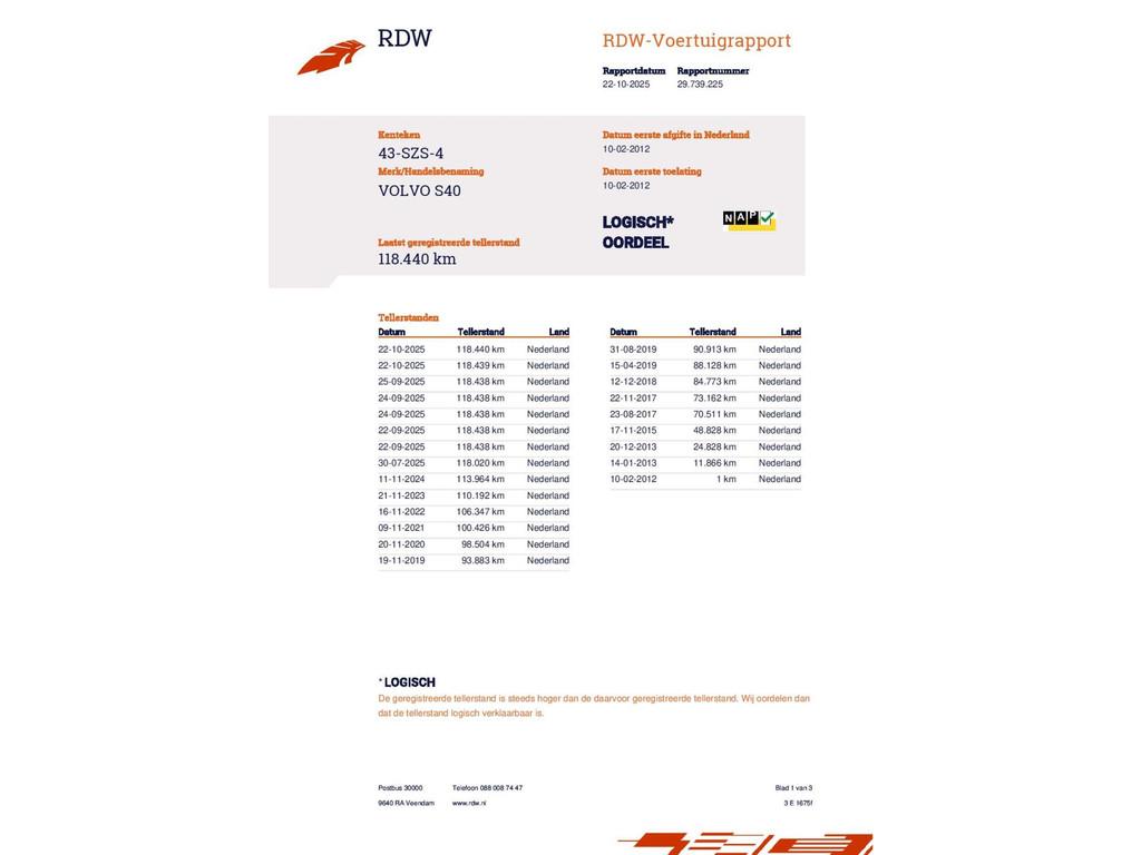 Mileage 118.440 NAP checked