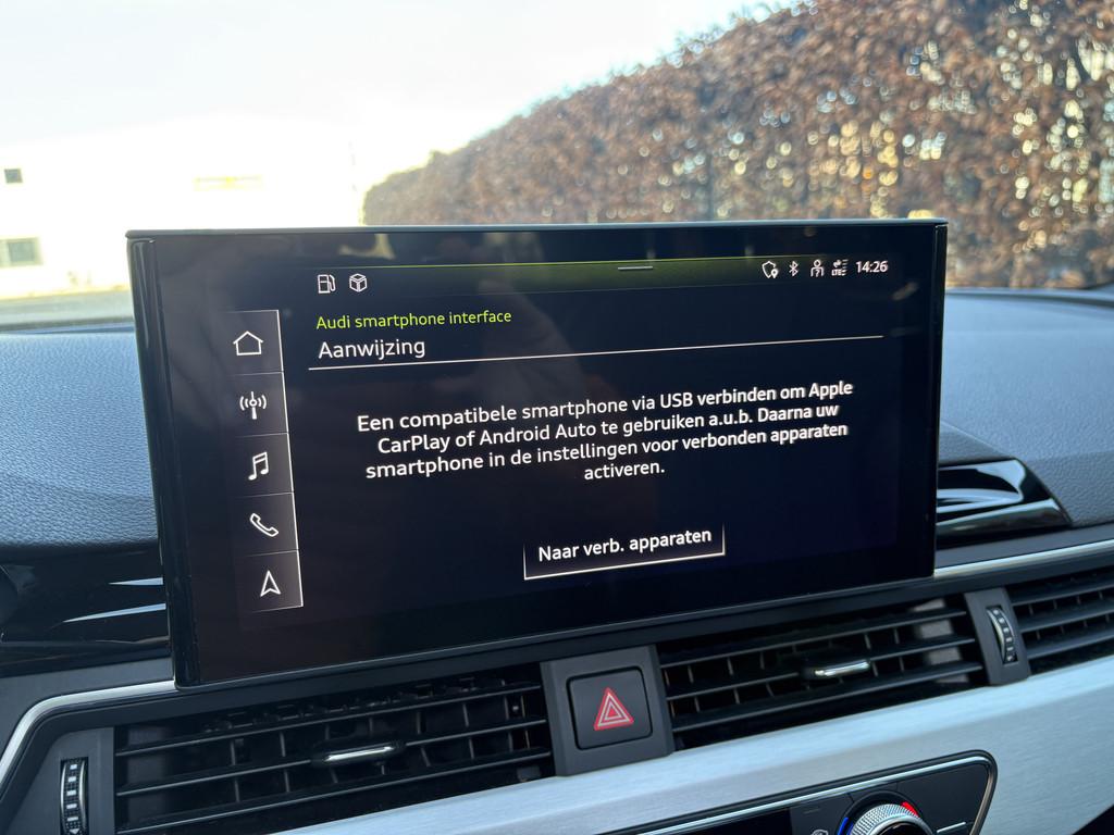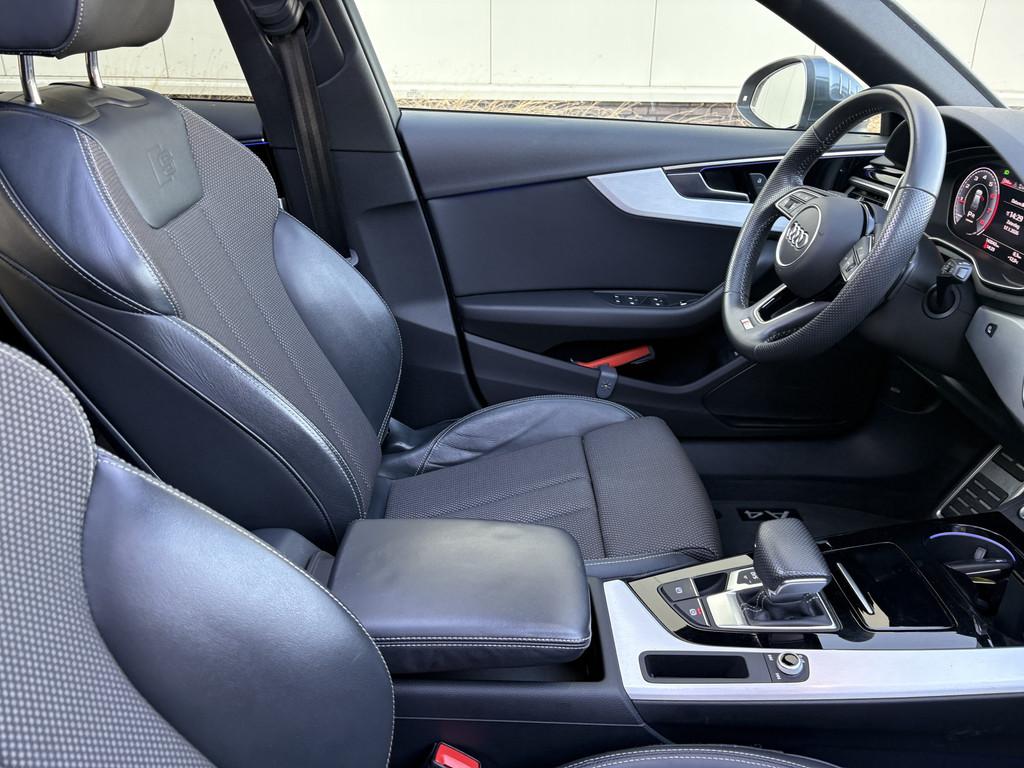 Achterbank in delen neerklapbaar, Airbag(s) hoofd achter, Airbag(s) hoofd voor, Airbag bestuurder, Airbag passagier, Alarm klasse 1(startblokkering), Alarmsysteem, Aluminium delen exterieur, Aluminium interieur afwerking, Aluminium raamlijsten (4ZB), Anti-diefstal alarmsysteem (7AL), Anti Blokkeer Systeem, Armsteun voor, Audio installatie, Audi sound system (9VD), Audi virtual cockpit (9S9), Bandenspanningscontrolesysteem, Binnenspiegel automatisch dimmend, Binnenspiegel frameloos, automatisch dimmend (4L6), Bluetooth, Bots herkenning systeem, Brake Assist System, Buitenspiegels, elektrisch inklapbaar en automatisch dimmend (6XK), Buitenspiegels elektrisch verstel- en verwarmbaar, Comfortsleutel (4I3/PGE), Connected services, Cruise control, Dakspoiler, Decoratielijsten, geborsteld aluminium (5TG), Decoratielijsten, hout klavierlak zwart Audi exclusive (5TL), Dimlichten automatisch en regensensor, Elektrisch bedienbare achterklep, Elektrisch bedienbare achterklep met sensorsturing, Elektrische ramen voor en achter, Elektrisch glazen panorama-dak, Geluidsisolerend glas, Getint glas vanaf de b-stijl (QL5), Hill hold functie, Keyless-pakket, Keyless entry, LED-koplampen incl. dynamische knipperlichten achter (PX2), LED achterlichten, LED koplampen, Lederen/stof bekleding, Lichtmetalen velgen 18", MMI navigatie plus (7UG), Navigatiesysteem full map, Panoramadak, glas, elektrisch bedienbaar (3FU), Parkeersensor achter, Sportonderstel, Sportonderstel (1BE), Sportstoelen, Sportstoelen voor (Q1D), Spraakbediening, Start/stop systeem, Stuur verstelbaar, Velgen, gegoten lichtmetaal 8J x 18 "5 Y-spaak" S-design (V99), Velgen, gegoten lichtmetaal 8J x 18 "10-spaak-Dynamic"-design (C5Y), Volledig digitaal instrumentenpaneel, Warmtewerend glas, WiFi, buitenspieg.elektr.inklap en aut. dim, centrale vergrendeling met afstandsbediening, electronic climate control, extra getint glas achter, lichtmetalen velgen 10-spaaks 18", schakelpaddles, smartphone integratie, stuur leder, stuur multifunctioneel, zwarte glans (piano)lak interieur afwerking