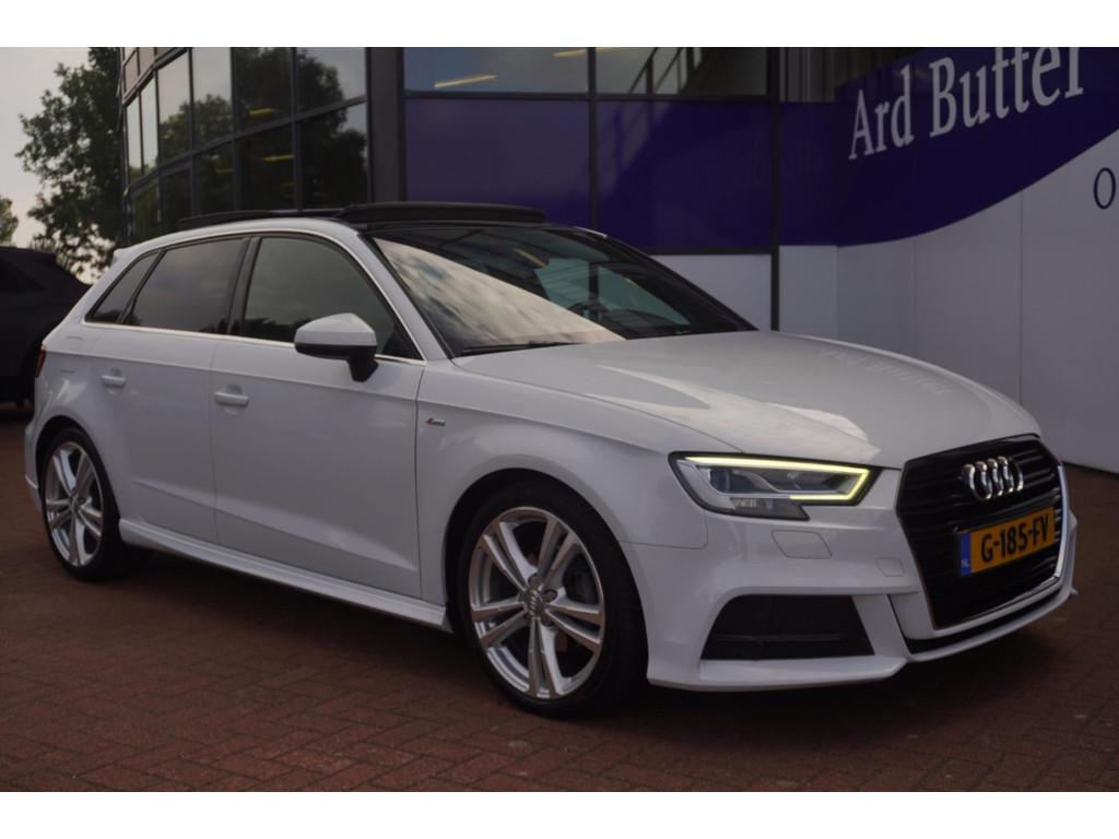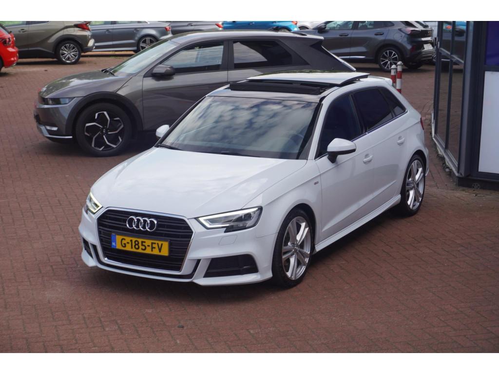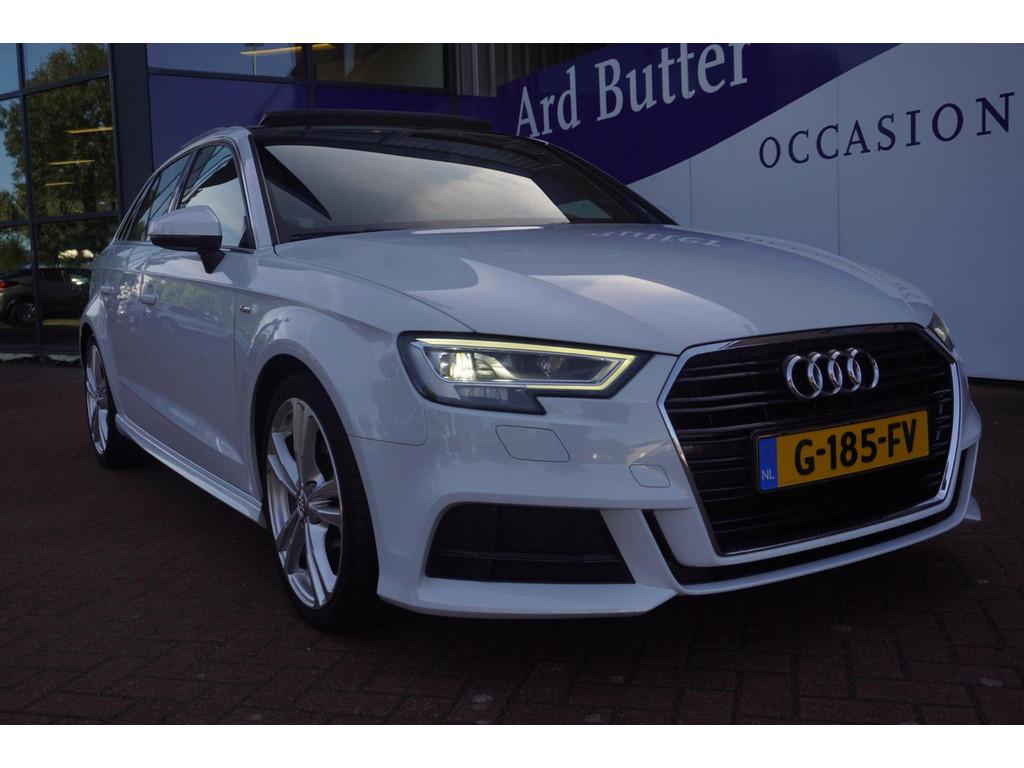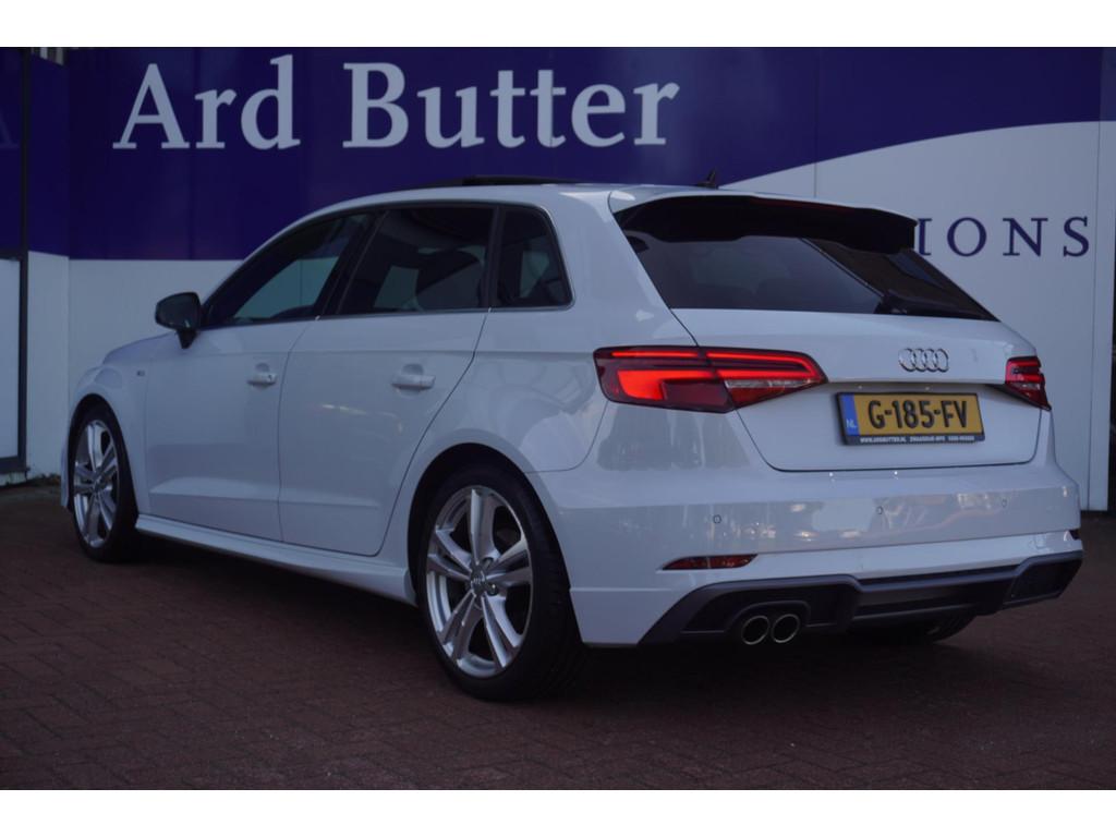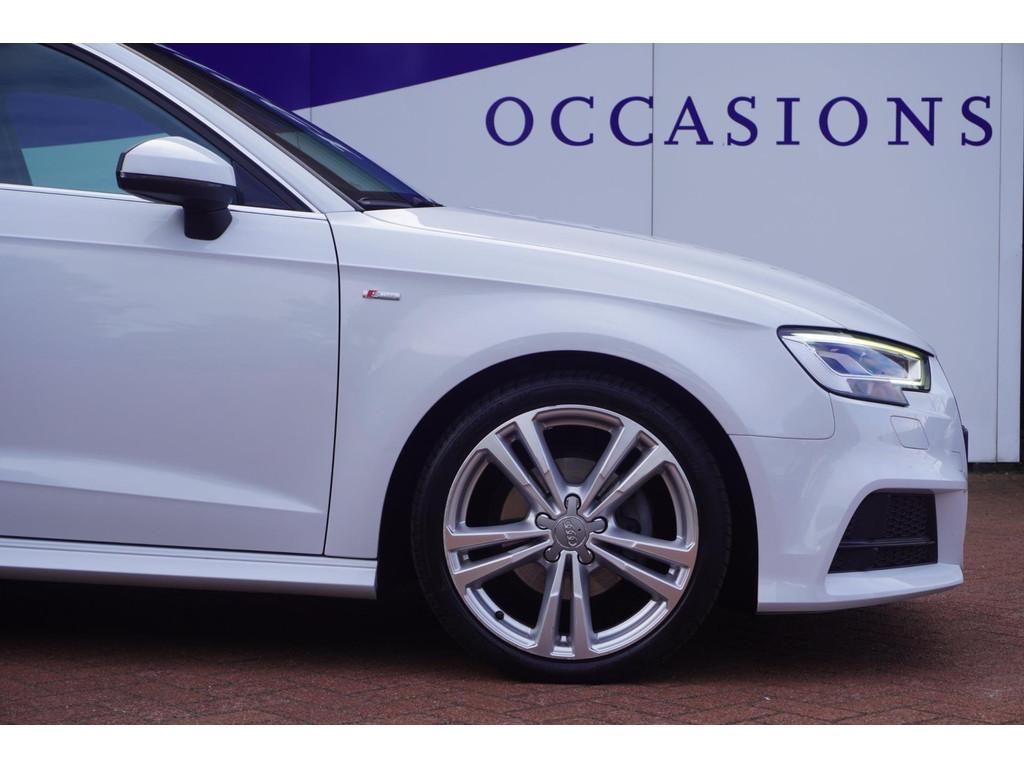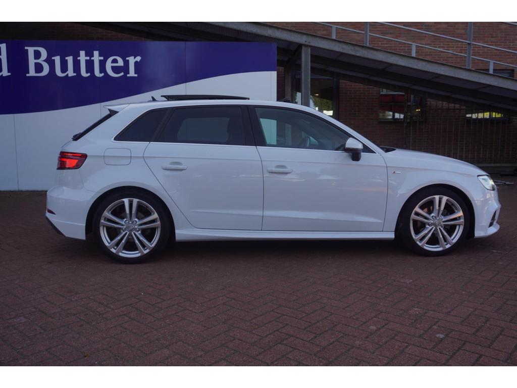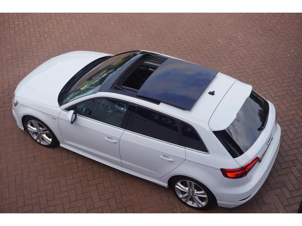 "Lichtmetalen velgen 18""", Achterbank in delen neerklapbaar, Achteropkomend verkeer waarschuwing, Achterspoiler, Airbag(s) hoofd achter, Airbag(s) hoofd voor, Airbag(s) knie, Airbag(s) side voor, Airbag bestuurder, Airbag passagier, Airco automatisch, Aluminium interieur afwerking, Anti Blokkeer Systeem (ABS), Armsteun voor, Audioinstallatie met CD-speler, Autotelefoonvoorbereiding met Bluetooth, Bandenspanningscontrolesysteem, Boordcomputer, Buitenspiegels elektrisch inklapbaar, Buitenspiegels elektrisch verstelbaar, Buitenspiegels verwarmbaar, Centrale deurvergrendeling met afstandsbediening, Cruise control, DAB-ontvanger, Dimlichten automatisch, Electronic Stability Program (ESP), Elektrische ramen achter, Elektrische ramen voor, Elektrisch glazen panorama-dak, Elektronisch sperdifferentieel (EDS), Extra getint glas, LED koplampen, Lederen/stoffen bekleding, Lederen stuurwiel, Multimedia-voorbereiding, Navigatie-systeem full map + hard disk, Navigatie full map, Parkeersensor achter, Regensensor, S Line exterieur, Sportonderstel, Sportstoelen, Sportstuur, Start/stop systeem, Startblokkering, Stuurbekrachtiging snelheidsafhankelijk, Stuur verstelbaar, Stuurwiel multifunctioneel, Telefoonintegratie, Tractie Controle Systeem (TCS), Verwarmde voorstoelen, Volledig digitaal instrumentenpaneel, Voorstoelen in hoogte verstelbaar, Warmtewerend glas, WiFi voorbereiding