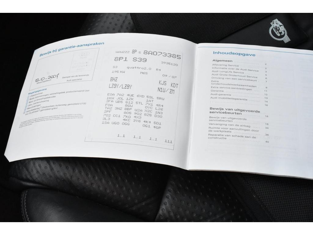 Achterbank in delen neerklapbaar, Airbag(s) hoofd achter, Airbag(s) hoofd voor, Airbag(s) side voor, Airbag bestuurder, Airbag passagier, Airco automatisch, Alarm klasse 3, Anti Blokkeer Systeem (ABS), Audioinstallatie met CD-speler, Bestuurders-informatie-systeem, Bestuurdersstoel in hoogte verstelbaar, Bi-xenon koplampen, Buitenspiegels elektrisch verstelbaar, Buitenspiegels verwarmbaar, Buitentemperatuurmeter, Cd-wisselaar, Centrale deurvergrendeling met afstandsbediening, Cruise control, Dakspoiler, Dimlichten automatisch, Electronic Brake Distribution (EBD), Electronic Stability Program (ESP), Elektrische ramen voor, Elektronisch sperdifferentieel (EDS), Getint warmtewerend glas, Hoofdsteunen actief, Koplampen adaptief, Koplampreiniging, Lederen sportstoelen, Lederen stuurwiel, Lederen versnellingspook, Lichtmetalen velgen multi-spaaks 18", Middenarmsteun voor, Mistlampen voor, Navigatiesysteem, Parkeersensor achter, Parkeersensor voor, Passagiersstoel in hoogte verstelbaar, Regensensor, S Line exterieur, Sportonderstel, Sportstoelen voor, Stuurbekrachtiging snelheidsafhankelijk, Stuur verstelbaar, Stuurwiel multifunctioneel, Tractie Controle Systeem (TCS), Zonnescherm achterruit