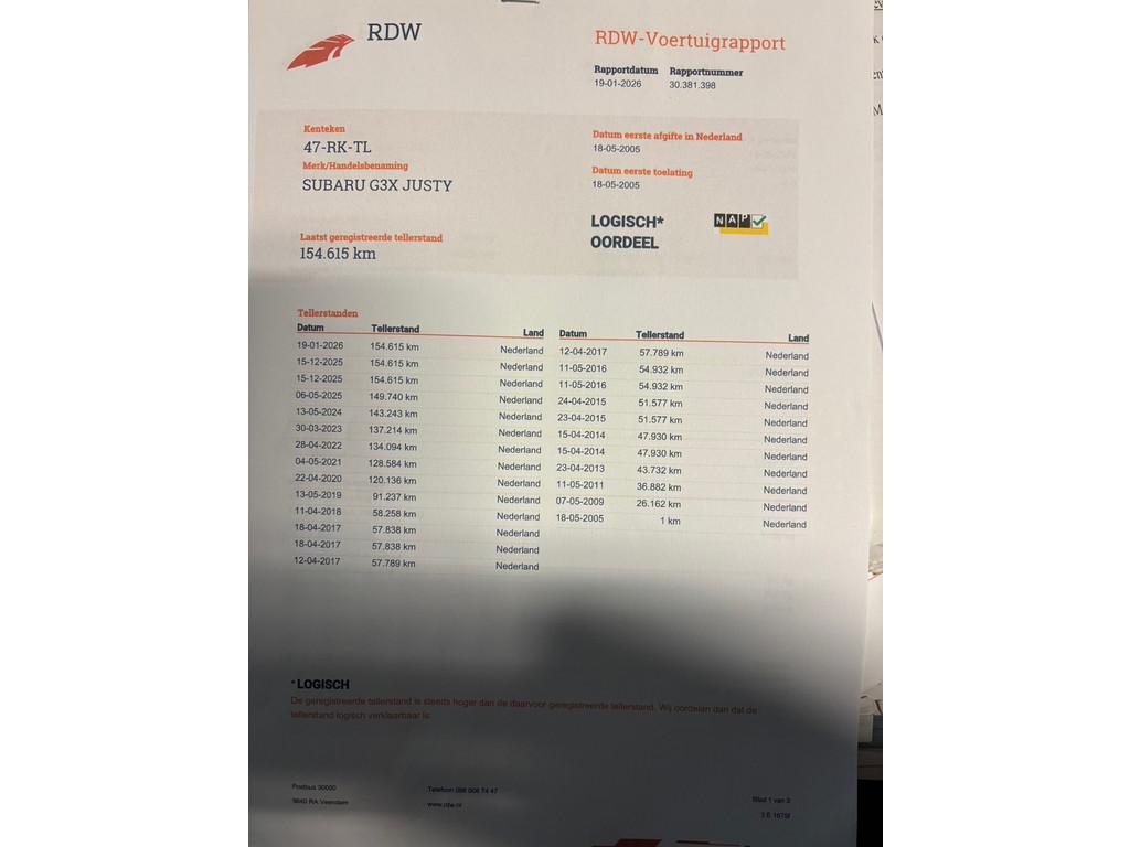 Mileage 154.615 NAP checked