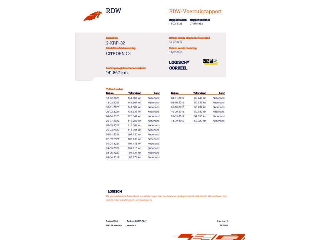 Mileage 142.080 NAP checked