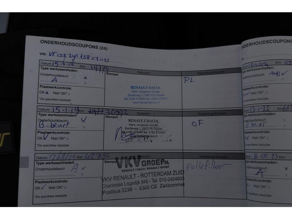 Achterbank in delen neerklapbaar, Achteropkomend verkeer waarschuwing, Achterspoiler, Airbag(s) side voor, Airbag bestuurder, Airbag passagier, Airco, Anti Blokkeer Systeem (ABS), Audio-navigatie full map, Autotelefoonvoorbereiding met Bluetooth, Bandenspanningscontrolesysteem, Bestuurdersstoel in hoogte verstelbaar, Boordcomputer, Buitenspiegels elektrisch verstelbaar, Buitenspiegels in carrosseriekleur, Buitenspiegels verwarmbaar, Buitentemperatuurmeter, Centrale deurvergrendeling met afstandsbediening, Cruise control, DAB-ontvanger, Electronic Brake Distribution (EBD), Electronic Stability Program (ESP), Elektrische ramen voor, Hill hold-functie, Hoofdsteunen actief, LED dagrijverlichting, Mp3-speler, Multimedia-voorbereiding, Niet in gerookt, Pack R-Link, Spraakbediening, Start/stop systeem, Startblokkering, Stuurbekrachtiging snelheidsafhankelijk, Stuur verstelbaar, Tractie Controle Systeem (TCS), Trekhaak, WiFi voorbereiding
