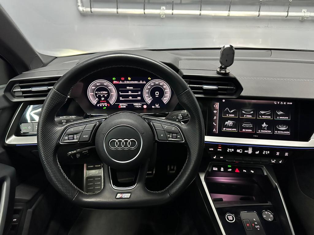 "Lichtmetalen velgen 18""", Accident Avoidance System, Achterbank in delen neerklapbaar, Achteruitrijcamera, Airbag(s) hoofd achter, Airbag(s) hoofd voor, Airbag(s) side achter, Airbag(s) side voor, Airbag bestuurder, Airbag passagier, Alarmsysteem, Aluminium delen exterieur, Aluminium interieur afwerking, Anti Blokkeer Systeem (ABS), Armsteun achter, Armsteun voor, Audio installatie premium, Bandenspanningscontrolesysteem, Bestuurdersstoel in hoogte verstelbaar, Binnenspiegel automatisch dimmend, Bots herkenning en activatie, Brake Assist System, Buitenspiegel(s) automatisch dimmend, Buitenspiegels elektrisch inklapbaar, Buitenspiegels elektrisch verstelbaar, Buitenspiegels verwarmbaar, Centrale deurvergrendeling met afstandsbediening, Connected services, Cruise control, Cruise control adaptief met Stop&Go, DAB-ontvanger, Dakspoiler, Dimlichten automatisch, Draadloze telefoonlader, Electronic Brake Distribution (EBD), Electronic Stability Program (ESP), Electronic climate controle, Elektrisch bedienbare achterklep met sensorsturing, Elektrisch glazen panorama-dak, Extra getint glas, Grootlicht-assistent, Hill hold-functie, Keyless entry, Keyless start, Koplampen adaptief, Koplampreiniging, LED-lichtpakket, LED achterlichten, LED dagrijverlichting, Lederen bekleding, Lederen stuurwiel, Matrix LED koplampen, Metallic lak, Multimedia-voorbereiding, Navigatie full map, Oplaadmogelijkheid, Parkeer-assistent, Parkeer pakket, Parkeersensor achter, Parkeersensor voor, Passagiersstoel in hoogte verstelbaar, Radio, Regensensor, Rijstrooksensor, Ruitensproeiers verwarmbaar, S Line exterieur, Sportstoelen, Sportstuur, Start/stop systeem, Startblokkering, Stof/kunstlederen bekleding, Stuurbekrachtiging, Stuurhulp, Stuurwiel multifunctioneel, Telefoonintegratie premium, Tractie Controle Systeem (TCS), Uitwijk assistent, Verkeersbord detectie, Verwarmde voorstoelen, Volledig digitaal instrumentenpaneel, Voorstoel(en) met massagefunctie, Warmtewerende voorruit, WiFi voorbereiding