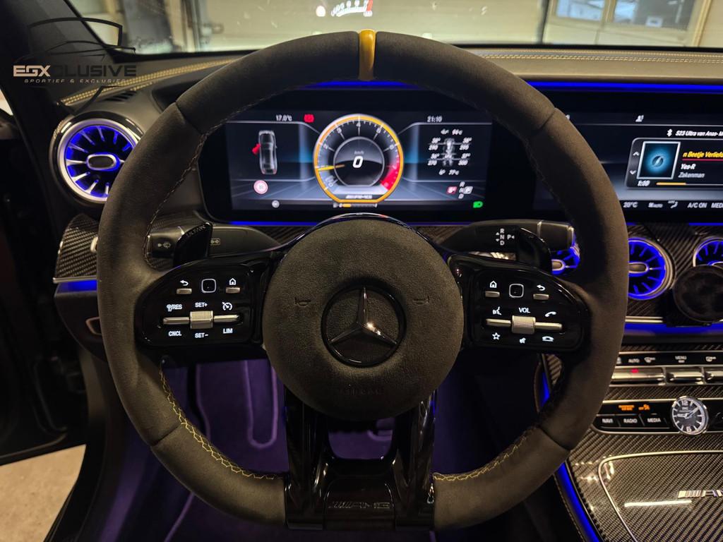 "Lichtmetalen velgen 20""", AMG-styling, Accident Avoidance System, Achterbank in delen neerklapbaar, Achterbank verwarmd, Achterspoiler, Achteruitrijcamera, Airbag(s) hoofd achter, Airbag(s) hoofd voor, Airbag(s) knie, Airbag(s) side achter, Airbag(s) side voor, Airbag bestuurder, Airbag passagier, Airco separaat achter, Alarm klasse 3, Aluminium interieur afwerking, Anti Blokkeer Systeem (ABS), Audio installatie, Audio installatie high-end, Audio installatie premium, Autonome parkeerfunctie, Bandenspanningscontrolesysteem, Binnen/buitenspiegel automatisch dimmend, Bots herkenning en activatie, Brake Assist System, Buitenspiegels elektrisch inklapbaar, Buitenspiegels elektrisch verstelbaar, Buitenspiegels verwarmbaar, Carbonafwerking interieur, Carbon exterieur delen, Centrale deurvergrendeling met afstandsbediening, Connected services, Cruise control, Cruise control adaptief met Stop&Go, DAB-ontvanger, Dodehoek detector, Draadloze telefoonlader, Edition 1 pakket, Electronic Brake Distribution (EBD), Electronic Stability Program (ESP), Electronic climate controle, Elektrisch bedienbare achterklep met sensorsturing, Elektrische ramen voor, Elektrisch glazen panorama-dak, Elektrisch verstelbare stoel(en) met geheugen, Elektrisch verstelbare stuurkolom met geheugen, Elektrisch verstelbare voorstoel(en), Elektrisch zonnescherm achterruit, Elektronisch sperdifferentieel (EDS), Extra getint glas, Geluidwerend glas, Gordelairbag(s), Head-up display, Interieur voorverwarmingsinstallatie, Keramische remschijven, Keyless-Go pakket, Keyless entry, Koplampreiniging, Kruisend verkeer detectie, LED achterlichten, LED dagrijverlichting, LED koplampen, LED koplampen adaptief, Lendesteunen (verstelbaar), Luxe lederen interieur, Memory-pakket, Metaalkleur parelmoer, Mistlampen voor, Multifunctioneel lederen stuurwiel, Multimedia-voorbereiding, Navigatie-systeem full map + hard disk, Optie-pakket, Parkeer-assistent, Parkeer pakket, Parkeersensor achter, Parkeersensor voor, Parkeervak sensor, Regensensor, Rijstrooksensor met correctie, Rondomzicht camera, Ruitensproeiers verwarmbaar, Schakelmogelijkheid aan stuurwiel, Speciale kleur, Spoor-pakket, Sportonderstel, Sportstoelen, Sportstuur, Spraakbediening, Start/stop systeem, Stoel ventilatie voor, Telefoonintegratie premium, Tractie Controle Systeem (TCS), Variabele stuuroverbrenging, Veiligheids-pakket, Verkeersbord detectie, Vermoeidheids herkenning, Verwarmde voorruit, Verwarmde voorstoelen, Volledig digitaal instrumentenpaneel, Voorstoelen in hoogte verstelbaar, Warmtewerend glas, WiFi voorbereiding, Zonnescherm zijruiten