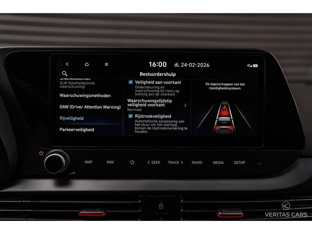 "Lichtmetalen velgen 16""", ''SOS"-knop, ACC, Accident Avoidance System, Achterbank in delen neerklapbaar, Achteruitrijcamera, Actieve Spoorassistent, Actieve afstandassistent, Actieve dodehoekassistent, Actieve remassistent, Actieve rijstrookwisselassistent, Actieve stuurassistent, Active Sound Booster systeem, Adaptive Cruise Control, Airbag(s) hoofd achter, Airbag(s) hoofd voor, Airbag(s) side voor, Airbag bestuurder, Airbag passagier, Airco, Anti Blokkeer Systeem (ABS), Apple Carplay/Android Auto, Armsteun voor, Autotelefoonvoorbereiding met Bluetooth, Bandenspanningscontrolesysteem, Bestuurdersstoel in hoogte verstelbaar, Binnenspiegel automatisch dimmend, Bluelink, Bose Sound, Bots waarschuwing systeem, Buitenspiegels elektrisch inklapbaar, Buitenspiegels elektrisch verstelbaar, Buitenspiegels in carrosseriekleur, Buitenspiegels verwarmbaar, Centrale deurvergrendeling met afstandsbediening, Connected services, Cruise control, DAB-ontvanger, DAW ( Driver Attention Warning ), Dimlichten automatisch, Dodehoek Detectie, Dodehoek detector, Draadloos opladen, Drive Mode, Dynamic Light Assist, Electronic Stability Program (ESP), Elektrische ramen achter, Elektrische ramen voor, Front assist, Full Led koplampen, HBA ( High Beam Assist ), LED dagrijverlichting, Lane Assist, Lederen stuurwiel, Lederen versnellingspook, Lichtassistent, Lichtmetalen velgen 17'', Mode Sport, Multimedia-voorbereiding, N Line uitvoering, Navigatiesysteem, Noodgevalassistent, PDW Parkeerveiligheid, Parkeerhulp, Parkeersensor achter, Radio, Rijbaan alarm, Rijmodus, Rijstrooksensor met correctie, Rijstrookveiligheid, SCC-reactue ( Smart Cruise Control ), Sfeerverlichting, Side Assist, Snelheidsassistent, Spraakbediening, Start/stop systeem, Startblokkering, Stoelverwarming, Stuur verstelbaar, Stuurverwarming, Telefoonintegratie premium, Tractie Controle Systeem (TCS), Verkeerstekenherkenning, Vermoeidheids herkenning, Vermoeidheidsherkenning, Volledig digitaal instrumentenpaneel, Waarschuwing frontale botsing, Waarschuwing verlaten rijstrook, Weergave adviessnelheid