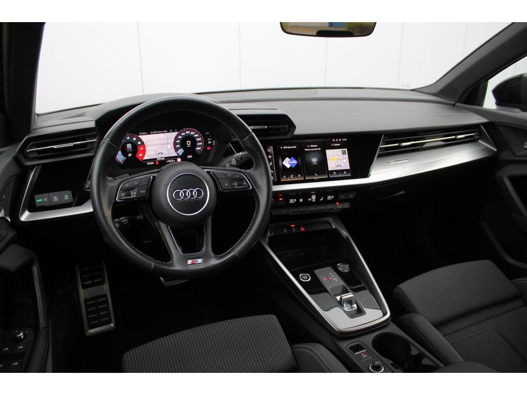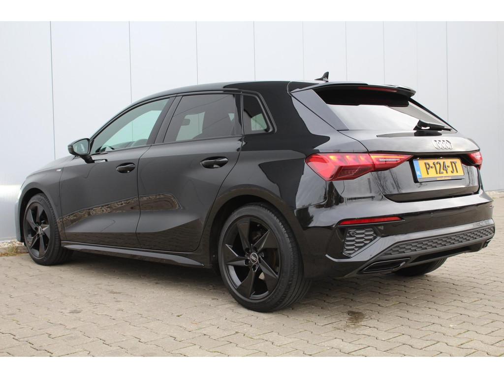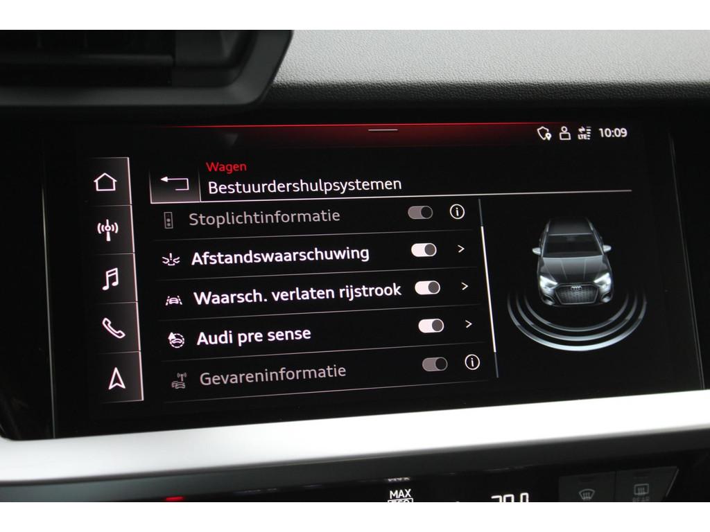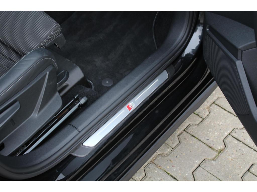 "Lichtmetalen velgen 5-spaaks 17""", Accident Avoidance System, Achterbank in delen neerklapbaar, Airbag(s) hoofd achter, Airbag(s) hoofd voor, Airbag(s) side voor, Airbag bestuurder, Airbag passagier, Aluminium delen exterieur, Aluminium interieur afwerking, Anti Blokkeer Systeem (ABS), Armsteun voor, Bandenspanningscontrolesysteem, Bestuurdersstoel in hoogte verstelbaar, Brake Assist System, Buitenspiegels elektrisch verstelbaar, Buitenspiegels in carrosseriekleur, Buitenspiegels verwarmbaar, Centrale deurvergrendeling met afstandsbediening, Connected services, Cruise control, DAB-ontvanger, Dakspoiler, Dimlichten automatisch, Electronic Brake Distribution (EBD), Electronic Stability Program (ESP), Electronic climate controle, Extra getint glas, Keyless start, Koplampen adaptief, Koplampreiniging, LED-lichtpakket, LED achterlichten, LED dagrijverlichting, Lederen bekleding, Lederen stuurwiel, Matrix LED koplampen, Multimedia-voorbereiding, Navigatie full map, Parkeersensor achter, Passagiersstoel in hoogte verstelbaar, Radio, Regensensor, Rijstrooksensor, Rijstrooksensor met correctie, Ruitensproeiers verwarmbaar, S Line exterieur, Sportonderstel, Sportstoelen, Sportstuur, Start/stop systeem, Startblokkering, Stof/kunstlederen bekleding, Stuurbekrachtiging, Stuurwiel multifunctioneel, Telefoonintegratie premium, Tractie Controle Systeem (TCS), Trekhaak met afneembare kogel, Uitwijk assistent, Verkeersbord detectie, Volledig digitaal instrumentenpaneel, Warmtewerende voorruit, WiFi voorbereiding, Wis-/was installatie voor koplampen
