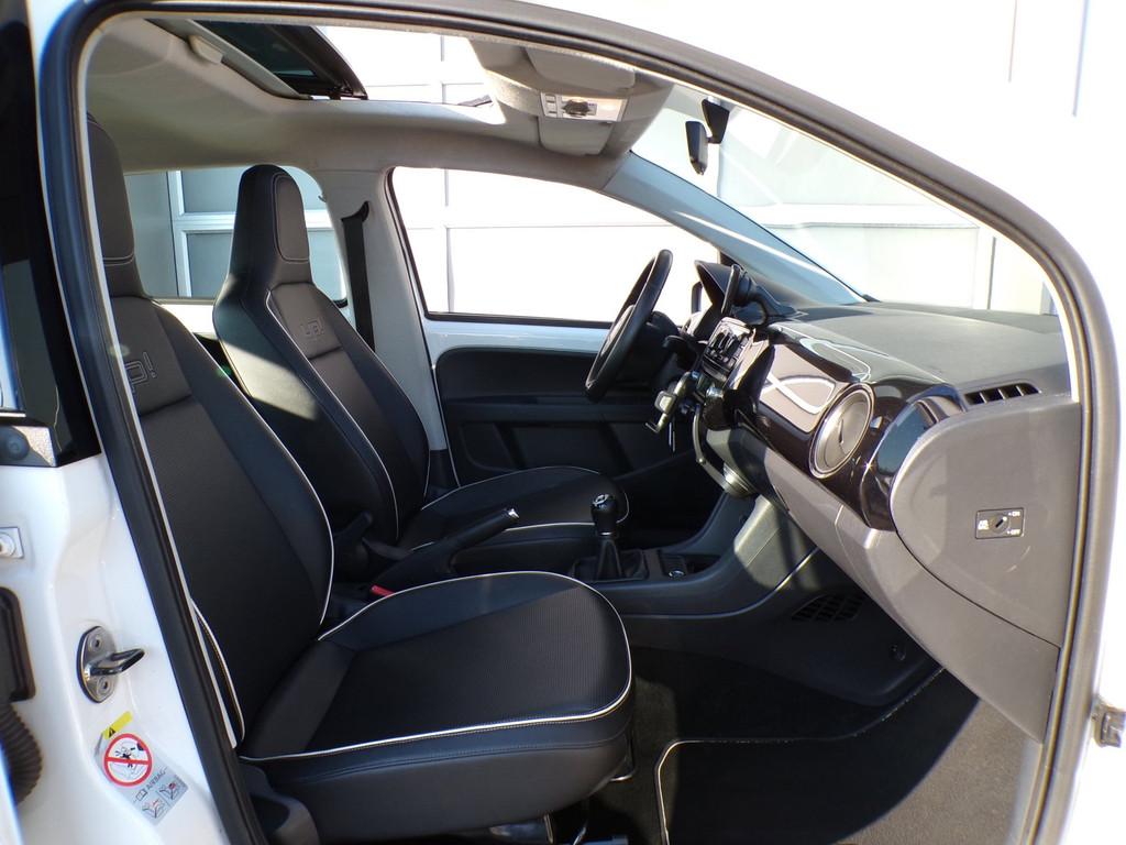 "Lichtmetalen velgen 15""", Achterbank in delen neerklapbaar, Airbag(s) hoofd voor, Airbag(s) side voor, Airbag bestuurder, Airbag passagier, Airco, Anti Blokkeer Systeem, Anti Blokkeer Systeem (ABS), Anti Slip Control, Bestuurdersstoel in hoogte verstelbaar, Buitenspiegels elektrisch verstelbaar, Buitenspiegels in carrosseriekleur, Buitenspiegels verwarmbaar, Centrale deurvergrendeling met afstandsbediening, Chroom delen exterieur, Electronic Stability Program, Electronic Stability Program (ESP), Elektrische ramen voor, Elektrisch glazen panorama-dak, Executive-pakket, Extra getint glas, Halogeen mistlampen, Hill hold-functie, Houten versnellingspook, Kunstlederen bekleding, Leder-pakket, Lederen stuurwiel, Lederen versnellingspook, Navigatie-systeem uitneembaar, Radio CD-speler, Signaalkleur, Start/stop systeem, Startblokkering, Stuurbekrachtiging snelheidsafhankelijk, Tractie Controle Systeem (TCS), Up! white, Verwarmde voorstoelen, Voorstoelen verwarmd