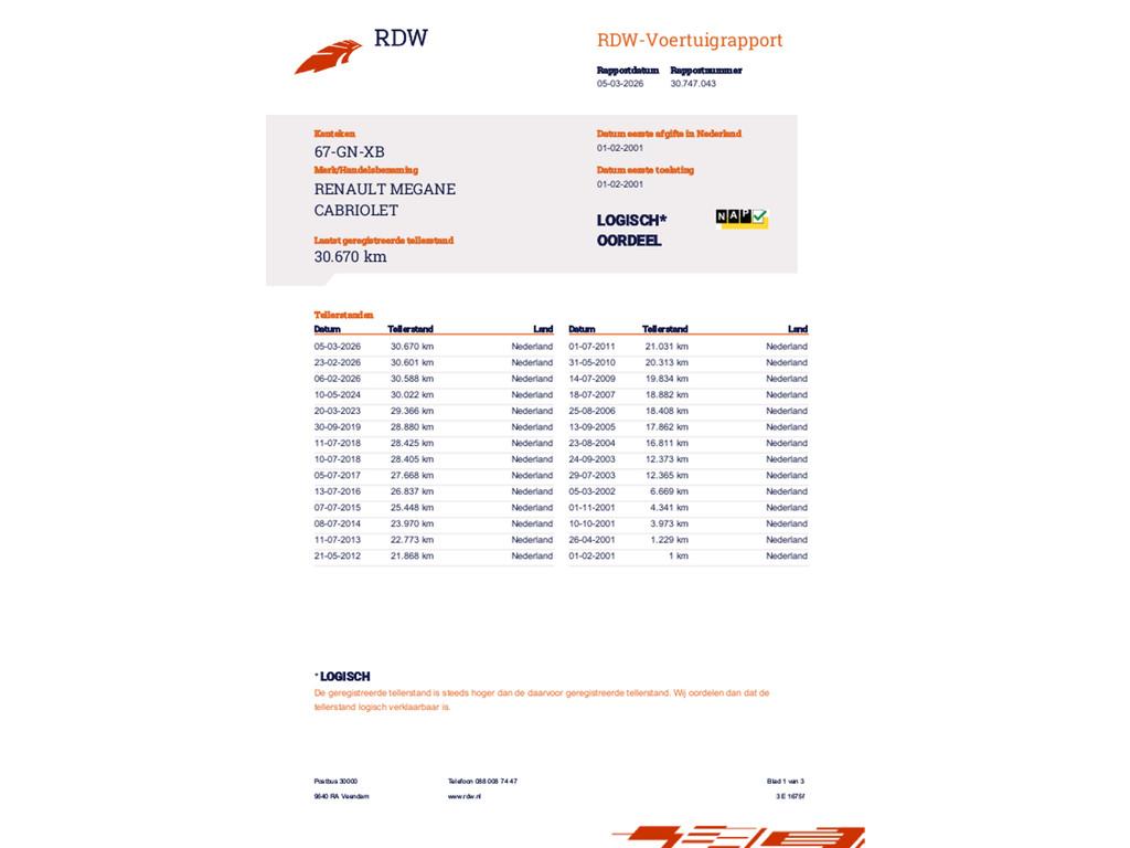 Mileage 30.670 NAP checked