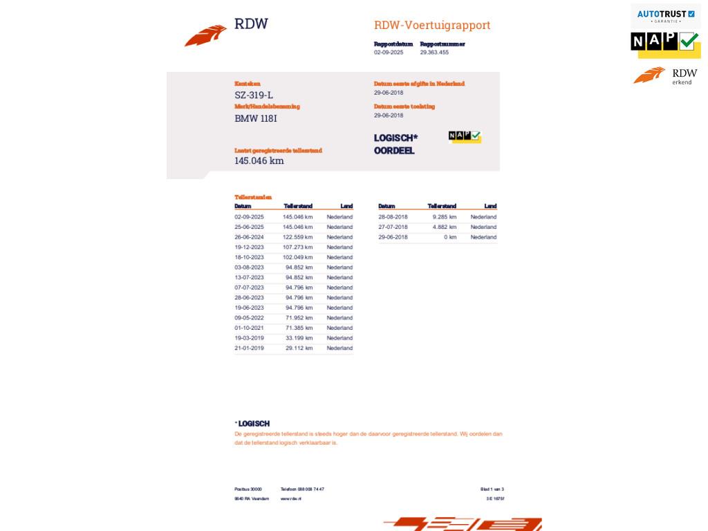 Mileage 145.046 NAP checked