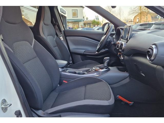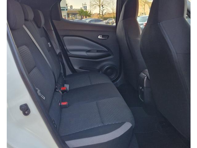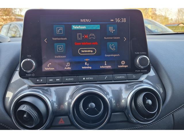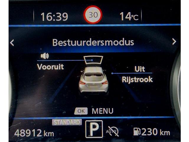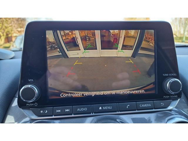 3 verstelbare hoofdsteunen achter, 7'' TFT kleurendisplay, 8'' kleurendisplay touchscreen, 12V aansluiting, 17'' lichtmetalen velgen, ABS/EBD/NBAS, Achterbankleuning in delen neerklapbaar (60/40), Achterspoiler, Achteruitrijcamera met dynamische afstandsmarkeringen, Active Ride Control, Active Trace Control, Apple carplay & Android Auto, Armsteun voorportieren en dashboard in synthetisch leder, Autohold functie, Automatic Hazard Signal + Emergency Stop Signal, Automatisch dimmende binnenspiegel, Automatische airconditioning, Automatisch geactiveerde alarmlichten, Automatisch inklapbare en verwarmbare buitenspiegels, Bandenspanningscontrolesysteem (TPMS), Bekerhouder voor (2x), Bekleding stof, Binnenportiergrepen in chroom, Buitenspiegelkappen en haaienvin-antenne in 'Enigma Black', Buitentemperatuurmeter, Centrale deurvergrendeling met afstandsbediening, Drive Assist, Drive modus functie, Elektrisch bedienbare ramen voor en achter met sneltoets bestuurders- en bijrijderszijde, Elektrisch verstelbare buitenspiegels, Emergency & Breakdown call, Extra getint glas, Flexibele bagageruimte indeling, Gordelwaarschuwing, High-Beam assist, Hill start assist, Hoedenplank, ISOFIX-bevestigingspunten met 'Top Tether' bevestingspunten, In hoogte verstelbare bestuurdersstoel, In hoogte verstelbare veiligheidsgordels, Intelligent Emergency Braking with Pedestrian recognition, Intelligent Key, Interieur ambiance verlichting, Kniesteunen met grijs synthetisch leder bekleed, LED achterlichten, LED dagrijverlichting, LED koplampen, LED mistlampen voor, LED mistlicht achter, Lane departure warning, Lederen stuurwiel en versnellingspook, Middenarmsteun voor, New NissanConnect infotainmentsysteem, Opbergvakken in de binnenportieren voor en achter met bekerhouders, Opbergvak op de rugleuning van de passagiersstoel, Parkeersensoren achter, Portiergrepen voor in kleur carrosserie, Regensensor, Reparatiekit voor de banden, Schakelindicator, Standaard lak 'Solid White', Start & Stop systeem, Start/stop knop, Stuurwielbediening, Traction Control System (TCS), Traffic Sign Recognition, USB achter, Uitschakelbare passagiersairbag, Vehicle Dyanmic Control, Verlichting kofferbak, Voor-, zij- en gordijnairbags, Voorstoelen met sportdesign en geïntegreerde hoofdsteunen, Wifi en spraakherkenning, Zonnekleppen bestuurder en passagier met verlicht make-up spiegeltje