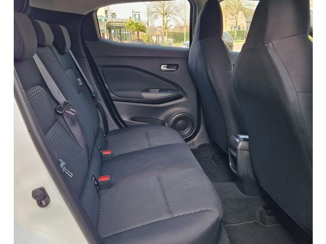 4,2'' TFT kleurendisplay, 8'' kleurendisplay touchscreen, 12V aansluiting, ABS/EBD/NBAS, Achterbankleuning in delen neerklapbaar (60/40), Achterspoiler, Achteruitrijcamera met dynamische afstandsmarkeringen, Active Ride Control, Active Trace Control, Apple carplay & Android Auto, Automatic Hazard Signal + Emergency Stop Signal, Automatisch geactiveerde alarmlichten, Bandenspanningscontrolesysteem (TPMS), Bekerhouder voor (2x), Bekleding stof, Binnenportiergrepen in chroom, Buitentemperatuurmeter, Centrale deurvergrendeling met afstandsbediening, Drive Assist, Elektrisch bedienbare ramen voor en achter met sneltoets bestuurderszijde, Elektrisch verstelbare buitenspiegels, Emergency & Breakdown call, Gordelwaarschuwing, High-Beam assist, Hill start assist, Hoedenplank, ISOFIX-bevestigingspunten met 'Top Tether' bevestingspunten, In hoogte verstelbare bestuurdersstoel, Intelligent Emergency Braking with Pedestrian recognition, LED achterlichten, LED dagrijverlichting, LED koplampen, LED mistlicht achter, Lane departure warning, Manuele airconditioning, New NissanConnect infotainmentsysteem, Portiergrepen voor in kleur carrosserie, Reparatiekit voor de banden, Schakelindicator, Sprietantenne, Standaard lak 'Solid White', Start & Stop systeem, Stoelverwarming, Stuurwielbediening, Traction Control System (TCS), Traffic Sign Recognition, Uitschakelbare passagiersairbag, Vehicle Dyanmic Control, Verlichting kofferbak, Voor-, zij- en gordijnairbags