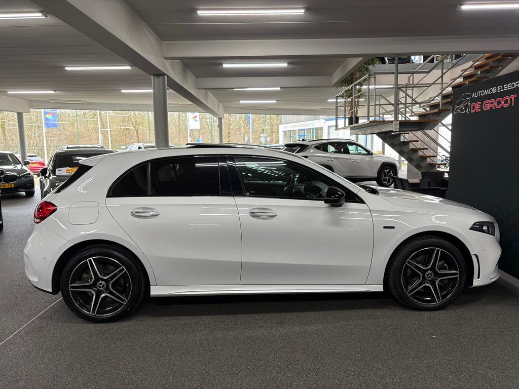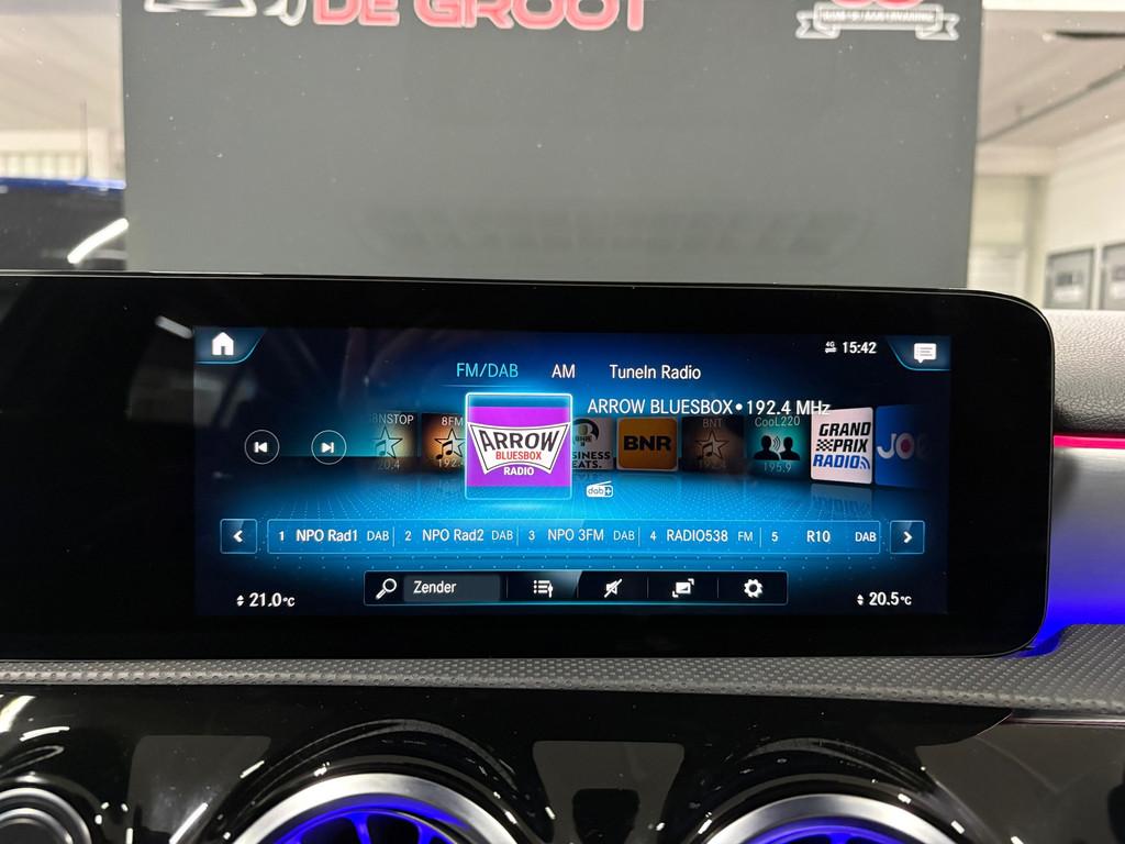 "Lichtmetalen velgen 17""", AMG-styling, Accident Avoidance System, Achterbank in delen neerklapbaar, Achteruitrijcamera, Airbag(s) hoofd achter, Airbag(s) hoofd voor, Airbag(s) knie, Airbag(s) side voor, Airbag bestuurder, Airbag passagier, Aluminium interieur afwerking, Android, Anti Blokkeer Systeem (ABS), Apple Car Play, Armsteun achter, Armsteun voor, Audio installatie, Bandenspanningscontrolesysteem, Binnenspiegel automatisch dimmend, Bots waarschuwing systeem, Brake Assist System, Buitenspiegel(s) automatisch dimmend, Buitenspiegels elektrisch inklapbaar, Centrale deurvergrendeling met afstandsbediening, Connected services, Cruise control, DAB-ontvanger, Dimlichten automatisch, Electronic Stability Program (ESP), Electronic climate controle, Elektrisch glazen panorama-dak, Elektrisch verstelb. passagiersstoel met geheugen, Elektrisch verstelbare bestuurdersstoel met geheugen, Extra getint glas, Grootlicht-assistent, Keyless entry, Keyless start, Koplampen adaptief, LED dagrijverlichting, LED koplampen, Lendesteunen (verstelbaar), Matrix LED koplampen, Multimedia-voorbereiding, Navigatie-systeem full map + hard disk, Parkeer-assistent, Parkeersensor achter, Parkeersensor voor, Premium kleur, Radio, Regensensor, Rijstrooksensor met correctie, Sportstoelen, Sportstuur, Spraakbediening, Start/stop systeem, Startblokkering, Stof/kunstlederen bekleding, Stuurwiel multifunctioneel, Verkeersbord detectie, Verlaagde carrosserie, Vermoeidheids herkenning, Verwarmde voorstoelen, Volledig digitaal instrumentenpaneel, WiFi voorbereiding