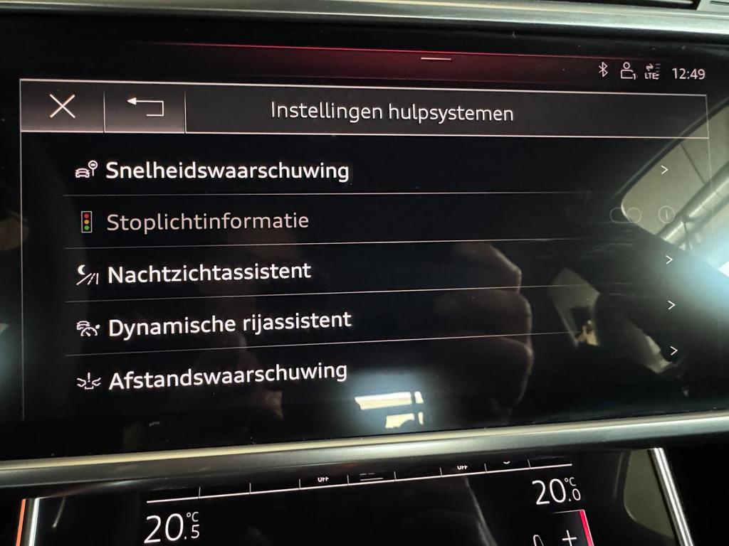 "Lichtmetalen velgen 22""", 4-wiel besturing, Accident Avoidance System, Achterbank in delen neerklapbaar, Achterbank verwarmd, Achterbankverwarming, Achteruitrij assistent, Active Cornering Enhancement (ACE), Adaptief Demping Systeem (ADS), Airbag(s) hoofd achter, Airbag(s) hoofd voor, Airbag(s) side achter, Airbag(s) side voor, Airbag bestuurder, Airbag passagier, Airco separaat achter, Alarmsysteem, Aluminium delen exterieur, Aluminium interieur afwerking, Anti Blokkeer Systeem (ABS), Armsteun achter, Armsteun voor, Assistentie Pakket, Audio installatie high-end, Audio installatie premium, Automatische niveauregeling, Autotelefoonvoorbereiding met Bluetooth, Bandenspanningscontrolesysteem, Binnenspiegel automatisch dimmend, Boordcomputer, Bots herkenning en activatie, Bots waarschuwing systeem, Brake Assist System, Buitenspiegel(s) automatisch dimmend, Buitenspiegels elektrisch inklapbaar, Buitenspiegels elektrisch verstelbaar, Buitenspiegels verwarmbaar, Carbonafwerking interieur, Carbon exterieur delen, Comfortstoel(en), Connected services, Cruise control, Cruise control adaptief met Stop&Go, DAB-ontvanger, Dakrails, Dimlichten automatisch, Dodehoek detector, Draadloze telefoonlader, Dynamic Plus Pack, Electronic Brake Distribution (EBD), Electronic Stability Program (ESP), Electronic climate controle, Elektrisch bedienbare achterklep met sensorsturing, Elektrische ramen achter, Elektrische ramen voor, Elektrisch glazen panorama-dak, Elektrisch verstelb. passagiersstoel met geheugen, Elektrisch verstelbare bestuurdersstoel met geheugen, Elektrisch verstelbare passagiersstoel, Elektrisch verstelbare stuurkolom met geheugen, Extra getint glas, File-assistent, Front assist, Gelimiteerd slipdifferentieel, Geluidwerend glas, Head-up display, Keramische remschijven, Keyless Go, Keyless entry, Keyless start, Koplampreiniging, Kruisend verkeer detectie, LED achterlichten, LED dagrijverlichting, LED koplampen met laser, Lane assist, Lederen/alcantara bekleding, Lederen sportstoelen, Lederen sportstuur, Lederen stuurwiel, Lederen versnellingspook, Lendesteunen (verstelbaar), Luxe lederen bekleding, Metallic lak, Multimedia-voorbereiding, Nachtzicht-assistent, Navigatie full map, Navigatie systeem, Panoramadak, Parkeersensor achter, Parkeersensor voor, Regensensor, Rijstrooksensor, Rijstrooksensor met correctie, Rondomzicht camera, Ruitensproeiers verwarmbaar, S Line exterieur, Schakelmogelijkheid aan stuurwiel, Side assist, Sluitbekrachtiging, Speciale kleur, Sportstuur, Startblokkering, Stoel koeling, Stoel ventilatie, Stoel ventilatie voor, Stoelverwarming, Stuurbekrachtiging, Stuurhulp, Stuurwiel multifunctioneel, Telefoonintegratie, Tractie Controle Systeem (TCS), Uitwijk assistent, Variabele stuuroverbrenging, Veiligheids-pakket, Verkeersbord detectie, Verwarmde voorruit, Verwarmde voorstoelen, Volledig digitaal instrumentenpaneel, Warmtewerend glas, cruise controle, electronisch bediende achterklep, keyless entry, nachtzicht assistent