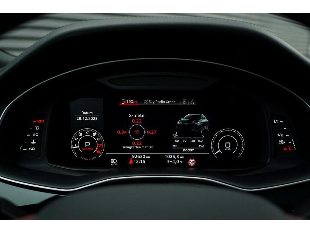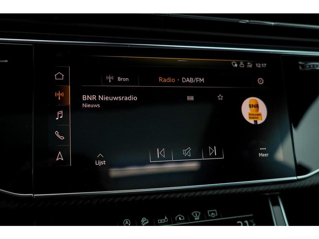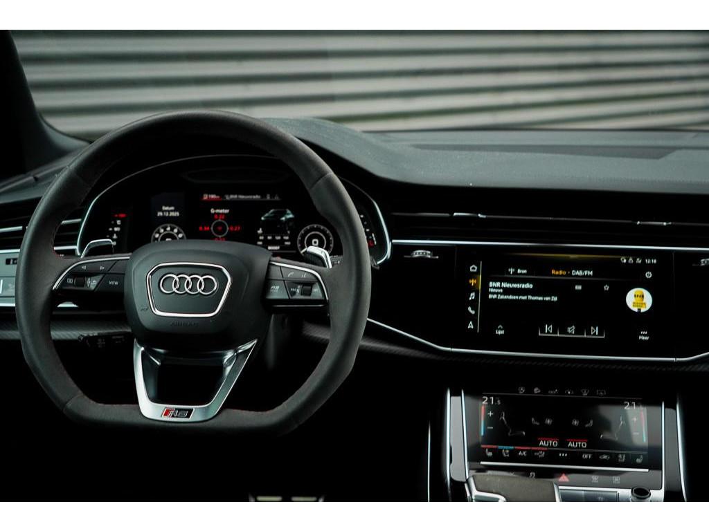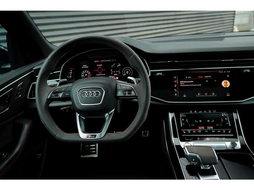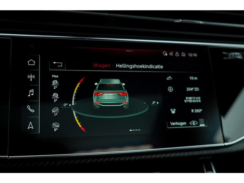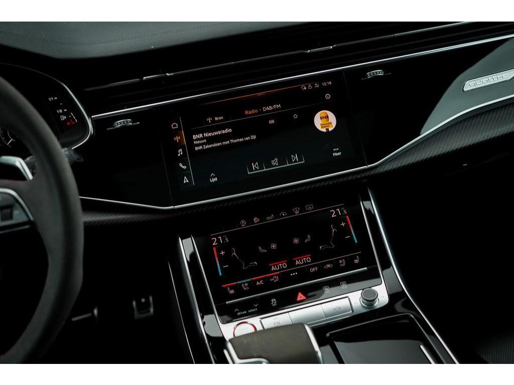 Achterbank plus (3NS), Akoestisch glas in de voor- en achterportieren (VW0), Anti Blokkeer Systeem, Assistentiepakket City (PCM), Assistentiepakket Tour (PCC), Audi Phone Box (9ZE), Audi active lane assist incl file assistent (6I6), Audi side assist inclusief Audi pre sense rear (PCH), Audi smartphone interface (IU1), Autonomous Emergency Braking, Bang & Olufsen Premium soundsystem met 3D sound vóór (9VS), Bluetooth telefoonvoorbereiding, Buitenspiegels, elektrisch inklapbaar en automatisch dimmend (6XK), DVD-Player (7D5), Decorinleg, aluminium spectrum (7TF), Decorinleg, carbon mat, keper geweven (5MH), Digitale radio ontvangst (QV3), Dynamic pakket plus (PA3), Elektronisch Stabiliteits Programma, HD Matrix LED-koplampen (PXC), Head-Up display (KS1), Keramische remschijven (PC5), Koplampreinigingsinstallatie (8X1), LED achterlichten, LED dagrijverlichting, Lane departure warning (6I3), Panoramadak (3FU), Privacy glas (QL5), RS-bumpers in carrosseriekleur (VJ3), RS-sportstoelen vóór in leder Valcona gepeforeerd met honingraat stiksel en stoelventilatie (PEH), S Line exterieur, Scheidingsnet (3CX), Servosluiting portieren (GZ2), Snelheidslimietherkenning (QR9), Sportdifferentieel met actieve rolstabilisator (PHZ), S sportstoelen vóór (Q4Q), Stoelen, vóór en achter verwarmbaar (4A4), Stoelen vóór, elektrisch verstelbaar met geheugen voor bestuurder- en bijrijdersstoel (PV6), Stoelventilatie voor (4D3), Stuurwiel, elektrisch in hoogte- en lengte verstelbaar (2C7), Top View 360° camera's incl. parkeerhulp vóór en achter (PCD), Trekhaak, elektrisch uitklapbaar (1D3), Velgen 10-spaak-ster (C3H), Vierwielbesturing (0N5), Voorruit, akoestisch glas en draadloos verwarmbaar (4GR), WiFi voorbereiding, Zonwering, mechanisch voor de achterruit en elektrisch voor de achterzijruiten (3Y6), achteruitrij assistent, adaptief demping systeem, airco separaat achter, alarm klasse 3, aluminium delen exterieur, armsteun achter, armsteun voor, bandenspanningscontrolesysteem, bestuurdersairbag, binnenspiegel automatisch dimmend, bots herkenning en activatie, bots waarschuwing systeem, buitenspiegels elektr. met geheugen, buitenspiegels elektrisch inklapbaar, buitenspiegels elektrisch verstel- en verwarmbaar, centrale deurvergrendeling met afstandsbediening, connected services, cruise control adaptief met Stop&Go, dimlichten automatisch, electronic climate controle, elektrisch bedienbare achterklep, elektrische ramen voor en achter, elektrisch verstelbare bestuurdersstoel, elektrisch verstelbare passagiersstoel, grootlichtassistent, hill hold functie, hoofd airbag(s) achter, hoofd airbag(s) voor, hoofdsteunen actief, koplampen adaptief, kruisend verkeer detectie, lederen interieurdelen, lederen stuurwiel, lendesteunen (verstelbaar), luchtvering en automatische niveauregeling, multimedia-voorbereiding, navigatiesysteem full map, parkeersensor achter, parkeersensor voor, passagiersairbag, regensensor, ruitensproeiers verwarmbaar, schakelmogelijkheid aan stuurwiel, sportstuur, start/stop systeem, stuurbekrachtiging, stuur verstelbaar, stuurwiel multifunctioneel, uitwijk assistent, volledig digitaal instrumentenpaneel, voorstoelen verwarmd, warmtewerend glas, zij airbag(s) voor, zonnescherm achterruit, zonnescherm zijruiten