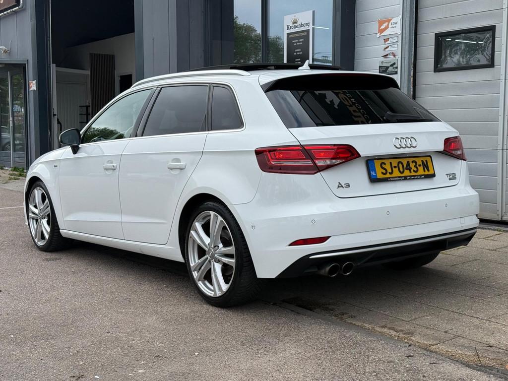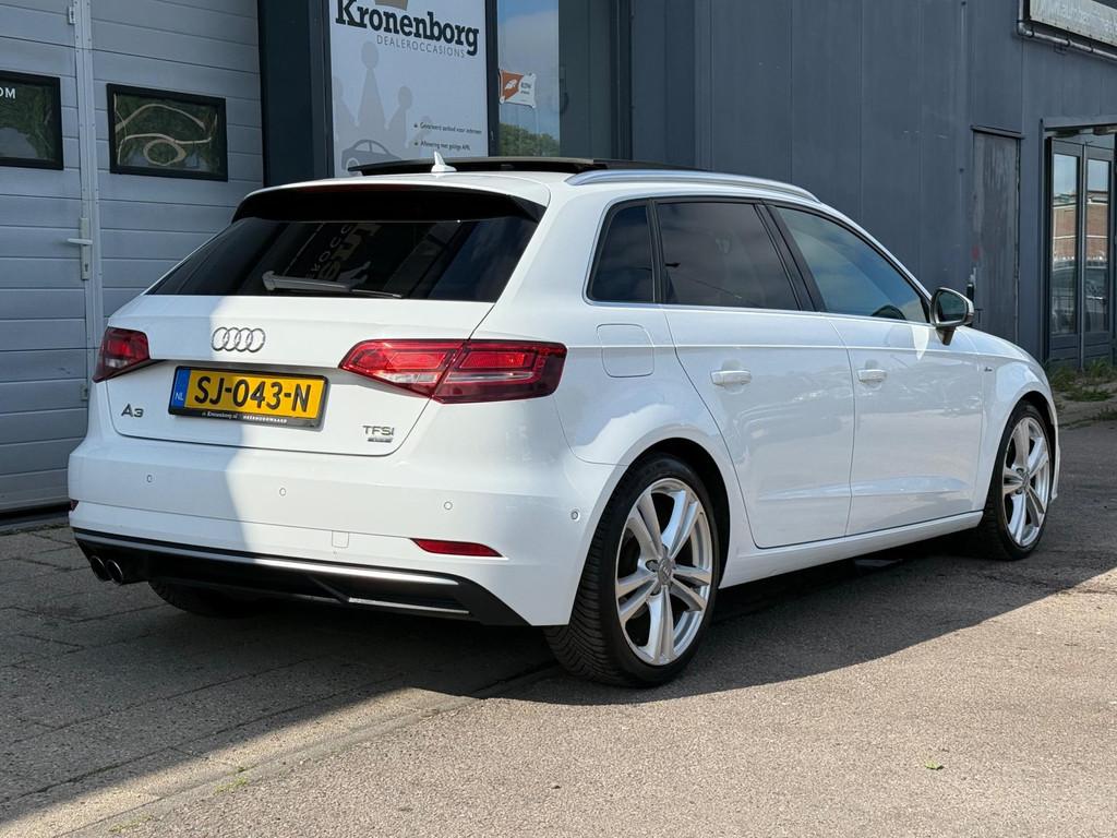"Lichtmetalen velgen 18""", "Lichtmetalen velgen 19""", Achterbank in delen neerklapbaar, Achteropkomend verkeer waarschuwing, Achterspoiler, Airbag(s) hoofd achter, Airbag(s) hoofd voor, Airbag(s) knie, Airbag(s) side achter, Airbag(s) side voor, Airbag bestuurder, Airbag passagier, Airco automatisch, Alarm klasse 3, Aluminium delen exterieur, Aluminium interieur afwerking, Anti Blokkeer Systeem (ABS), Armsteun voor, Audioinstallatie met CD-speler, Audio installatie premium, Autotelefoonvoorbereiding met Bluetooth, Bandenspanningscontrolesysteem, Boordcomputer, Buitenspiegels elektrisch verstelbaar, Buitenspiegels verwarmbaar, Centrale deurvergrendeling met afstandsbediening, Cruise control, Dimlichten automatisch, Electronic Stability Program (ESP), Elektrische ramen achter, Elektrische ramen voor, Elektrisch glazen panorama-dak, Elektronisch sperdifferentieel (EDS), LED koplampen, Lederen/stoffen bekleding, Lederen stuurwiel, Luxe lederen bekleding, Multimedia-voorbereiding, Navigatie-systeem full map + hard disk, Navigatie full map, Parkeer-assistent, Parkeersensor voor, Regensensor, S Line exterieur, Sportonderstel, Sportstoelen, Sportstuur, Start/stop systeem, Startblokkering, Stuurbekrachtiging snelheidsafhankelijk, Stuur verstelbaar, Stuurwiel multifunctioneel, Telefoonintegratie, Tractie Controle Systeem (TCS), Verwarmde voorstoelen, Voorstoelen in hoogte verstelbaar, Warmtewerend glas, WiFi voorbereiding