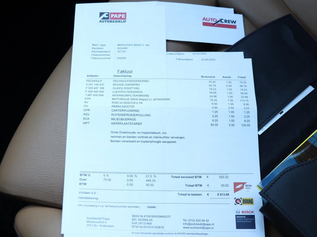 "Lichtmetalen velgen 18""", AMG-styling, Accident Avoidance System, Achterbank in delen neerklapbaar, Achteropkomend verkeer waarschuwing, Achteruitrijcamera, Airbag(s) hoofd achter, Airbag(s) hoofd voor, Airbag(s) knie, Airbag(s) side voor, Airbag bestuurder, Airbag passagier, Airco automatisch, Aluminium interieur afwerking, Anti Blokkeer Systeem (ABS), Armsteun voor, Audioinstallatie met CD-speler, Autotelefoonvoorbereiding met Bluetooth, Bandenspanningscontrolesysteem, Binnenspiegel automatisch dimmend, Buitenspiegel(s) automatisch dimmend, Buitenspiegels elektrisch inklapbaar, Buitenspiegels elektrisch verstelbaar, Buitenspiegels verwarmbaar, Centrale deurvergrendeling met afstandsbediening, Chroom delen exterieur, Connected services, Cruise control, Dimlichten automatisch, Dodehoek detector, Electronic Brake Distribution (EBD), Electronic Stability Program (ESP), Elektrische ramen achter, Elektrische ramen voor, Elektrisch verstelbare voorstoel(en), Hill hold-functie, Houtafwerking interieur, Keyless start, Koplampen adaptief, LED achterlichten, LED dagrijverlichting, LED koplampen, Lederen bekleding, Lederen stuurwiel, Metallic lak, Multimedia-voorbereiding, Navigatie full map, Parkeer-assistent, Parkeersensor achter, Parkeersensor voor, Regensensor, Schakelmogelijkheid aan stuurwiel, Sfeerverlichting interieur, Spraakbediening, Start/stop systeem, Startblokkering, Stuurbekrachtiging snelheidsafhankelijk, Stuurwiel multifunctioneel, Tractie Controle Systeem (TCS), Trekhaak elektrisch uitklapbaar, Vermoeidheids herkenning, Verwarmde voorstoelen, Warmtewerend glas