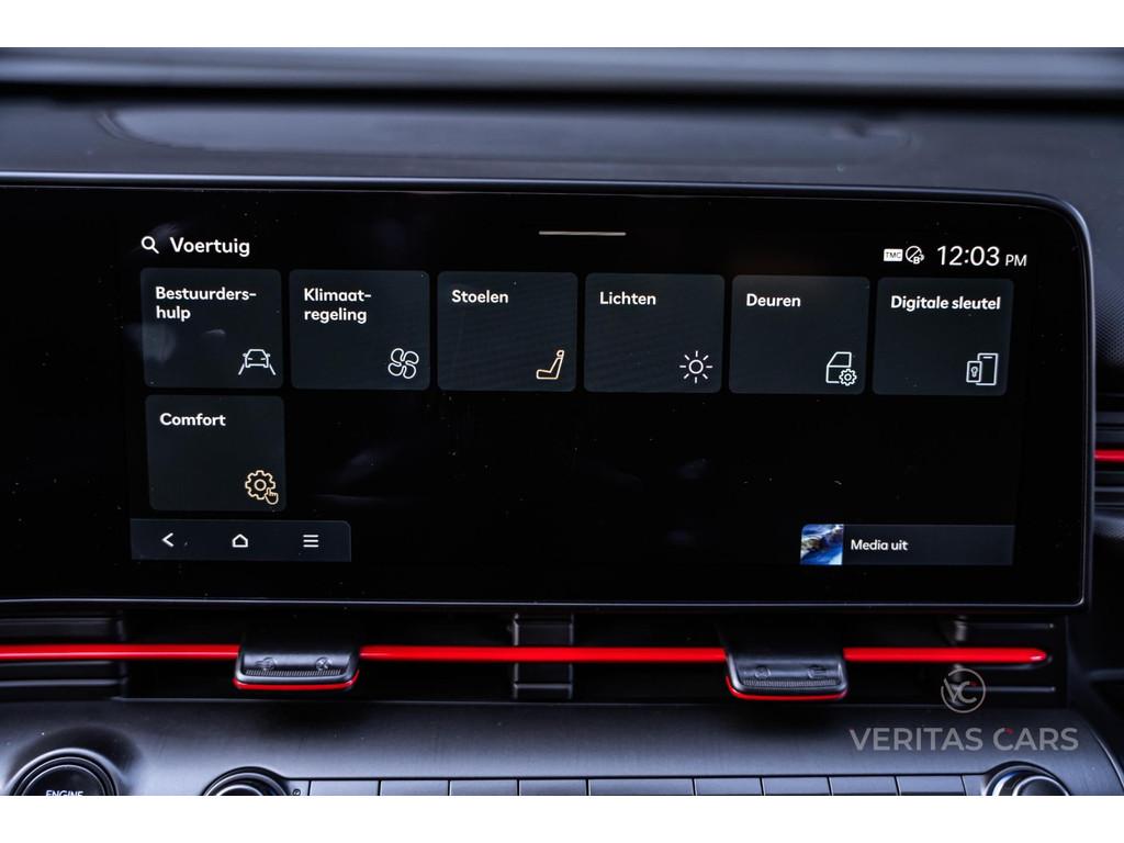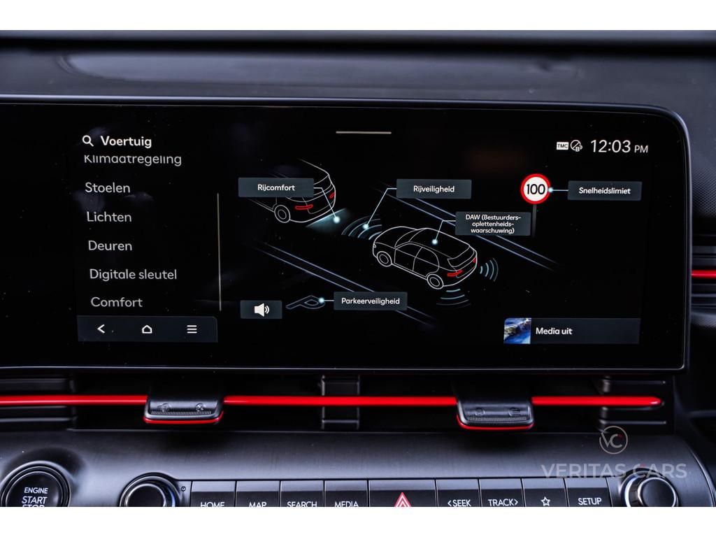 360° Camera, Achterbank in delen neerklapbaar, Achteruitrijcamera, Actieve Spoorassistent, Actieve afstandassistent, Actieve dodehoekassistent, Actieve remassistent, Actieve rijstrookwisselassistent, Actieve stuurassistent, Adaptive Cruise Control, Afstandwaarschuwing, Airbag, Airbag(s) side, Airbag(s) side voor, Airbag bestuurder, Airbag passagier, Airco automatisch, Alarmsysteem, Alcantara bekleding, Anti Blokkeer Systeem (ABS), Apple Carplay/Android Auto, Armsteun achter, Armsteun voor, Audio-navigatie full map, Audioinstallatie met CD-speler, Autotelefoonvoorbereiding, Autotelefoonvoorbereiding met Bluetooth, Binnenspiegel automatisch dimmend, Bluelink, Boordcomputer, Buitenspiegels elektrisch inklapbaar, Buitenspiegels elektrisch verstelbaar, Buitenspiegels in carrosseriekleur, Buitenspiegels verwarmbaar, Bumpers in carrosseriekleur, Camera intereur, Centrale deurvergrendeling, Centrale deurvergrendeling met afstandsbediening, Climate Control, Cruise control, DAW ( Driver Attention Warning ), Dakrails, Digital Key, Dodehoek Detectie, Draadloos Laadsysteem, Drive Mode, Dubbele airbag, Easy access stoel, Electronic Brake Distribution (EBD), Electronic Stability Program (ESP), Elektrische Achterklep, Elektrische Stoelen, Elektrische ramen, Elektronische climate control, Full Led koplampen, Getint glas, HDA ( Highway Driving Assist ), Hoofdsteunen achter, Hoofdsteunen voor, Keyless Start, Keyless entry, LED dagrijverlichting, Lederen bekleding, Lederen stuurwiel, Lichtmetalen velgen, Lichtmetalen velgen 18", Memory Stoelen, Metallic lak, Mistlampen, Mistlampen voor, Multimedia-voorbereiding, My Drive Mode, My Smartphone Key, N Line uitvoering, Navigatiesysteem, Offroad, Panoramadak, Parkeerhulp, Parkeersensor achter, Parkeersensor voor, Precrash-systeem, Radio CD-speler, Regensensor, Rijbaan alarm, Rijstrookveiligheid, SCC-reactue ( Smart Cruise Control ), Sfeerverlichting, Snelheidsassistent, Snelheidswaarschuwing, Sportstoelen, Stoelverwarming/-ventilatie, Stuurbekrachtiging, Stuurverwarming, Stuurwiel multifunctioneel, Toerenteller, Tractie Controle Systeem (TCS), Verkeerstekenherkenning, Verstelbare (in hoogte) bestuurders stoel, Verstelbare stuurkolom, Verwarmde voorstoelen, Waarschuwing frontale botsing, Waarschuwing verlaten rijstrook, Weergave adviessnelheid
